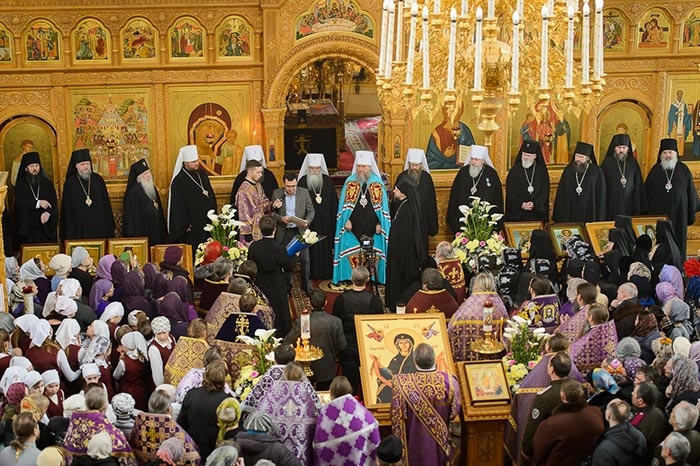 За Божественной Литургией Главе Митрополичьего округа Русской Православной Церкви в Республике Казахстан сослужили: митрополит Петрозаводский и Карельский Константин, глава Карельской митрополии; митрополит Томский и Асиновский Ростислав, глава Томской митрополии; митрополит Екатеринбургский и Верхотурский Кирилл, глава Екатеринбургской митрополии; митрополит Ставропольский и Невинномысский Кирилл, глава Ставропольской митрополии, председатель Синодального комитета по взаимодействию с казачеством; митрополит Костромской и Нерехтский Ферапонт, глава Костромской митрополии; архиепископ Уральский и Актюбинский Антоний, архиепископ Чимкентский и Таразский Елевферий, викарий Астанайской епархии епископ Талдыкорганский Нектарий, епископ Павлодарский и Экибастузский Варнава, епископ Карагандинский и Шахтинский Севастиан, епископ Усть-Каменогорский и Семипалатинский Амфилохий, епископ Кокшетауский и Акмолинский Серапион, епископ Петропавловский и Булаевский Владимир; епископ Галичский и Макарьевский Алексий; благочинный приходов Алма-Аты протоиерей Валерий Захаров, благочинный приходов Астаны архимандрит Сергий (Карамышев); руководители отделов и комиссий Казахстанского Митрополичьего округа в священном сане, духовенство, прибывшее с гостями-архипастырями, клирики Алма-Атинской епархии.