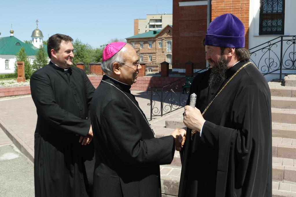 Ватиканского посланника сопровождал священник Франческо Де Пьюдт. Высокого гостя встречали епископ Усть-Каменогорский и Семипалатинский Амфилохий и секретарь епархии диакон Илия Кван.