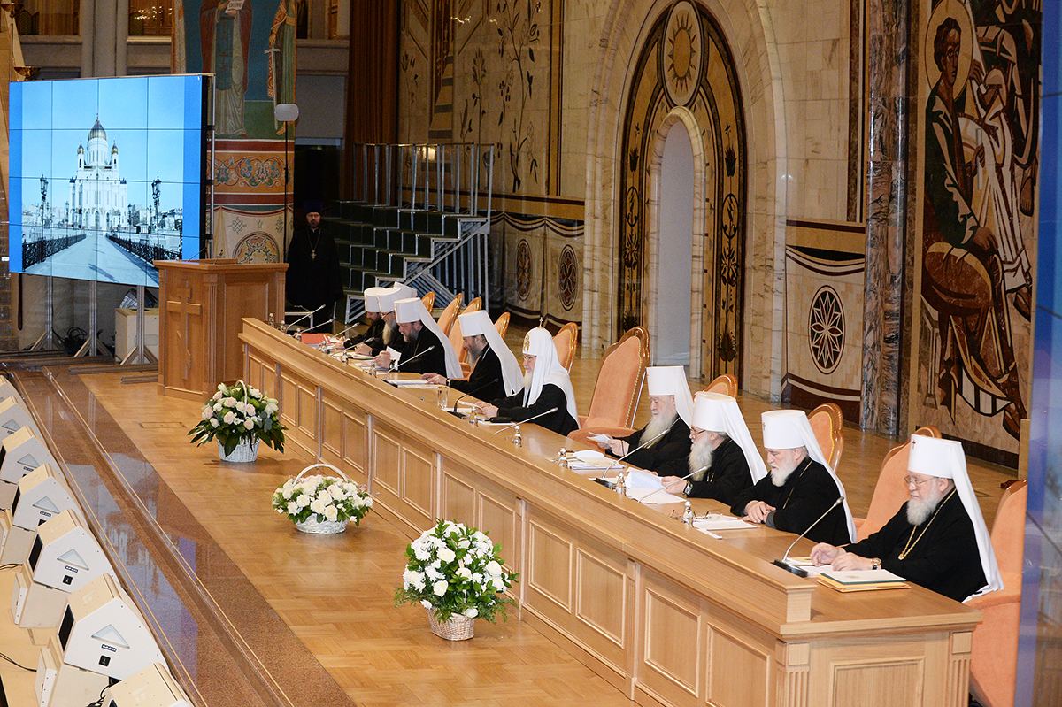 Святейший Патриарх Кирилл пригласил занять места в президиуме: митрополита Киевского и всея Украины Онуфрия; митрополита Крутицкого и Коломенского Ювеналия; митрополита Кишиневского и всея Молдовы Владимира; митрополита Ташкентского и Узбекистанского Викентия, главу Среднеазиатского митрополичьего округа; митрополита Санкт-Петербургского и Ладожского Варсонофия, управляющего делами Московской Патриархии; митрополита Минского и Заславского Павла, Патриаршего экзарха всея Беларуси; митрополита Волоколамского Илариона, председателя Отдела внешних церковных связей Московского Патриархата; митрополита Восточно-Американского и Нью-Йоркского Илариона, первоиерарха Русской Зарубежной Церкви; митрополита Рижского и всея Латвии Александра.