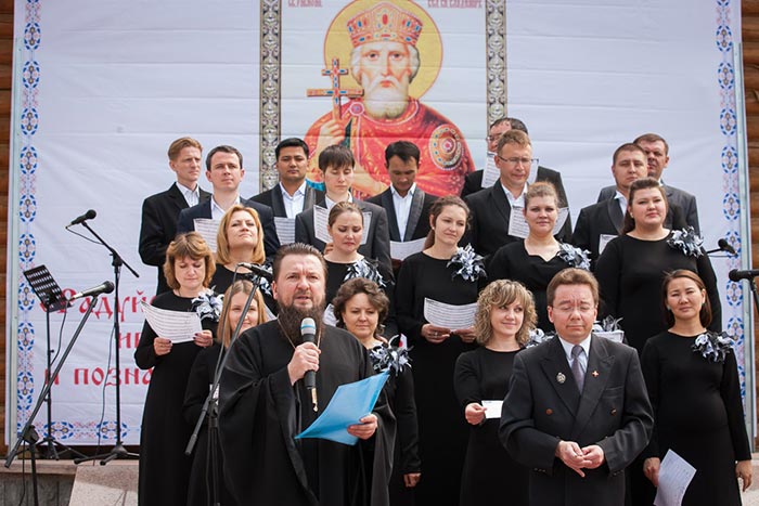 После открытия мемориальной доски на площади перед храмом Христа Спасителя начался концерт творческих музыкальных коллективов и солистов города Алма-Аты, организованный комиссией по культуре Казахстанского Митрополичьего округа под руководством Заслуженного артиста России протодиакона Михаила Спельника. Музыканты, певцы и артисты представили собравшимся разнообразную программу из духовных и светских произведений.