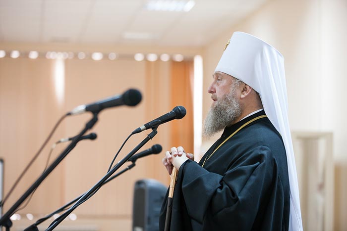 После приветственного слова митрополита Александра руководитель информационного отдела протоиерей Евгений Иванов рассказал собравшимся о концепции выставки и прокомментировал некоторые группы фотографий.