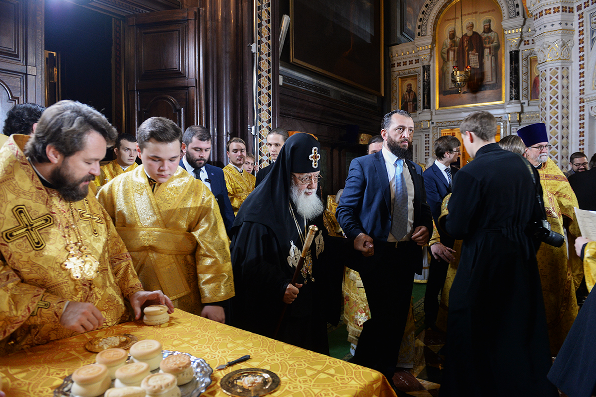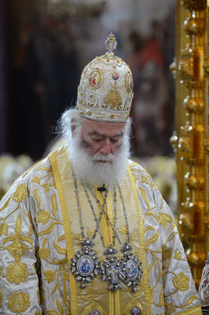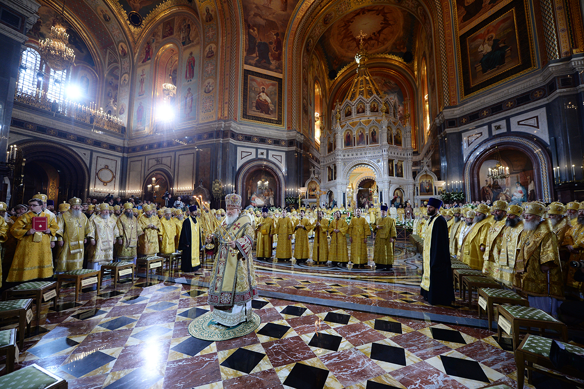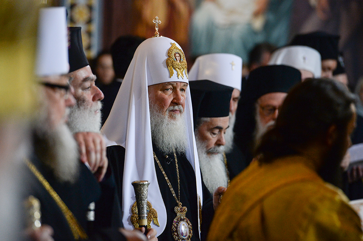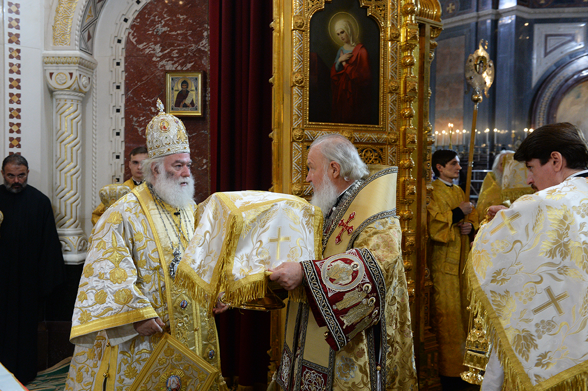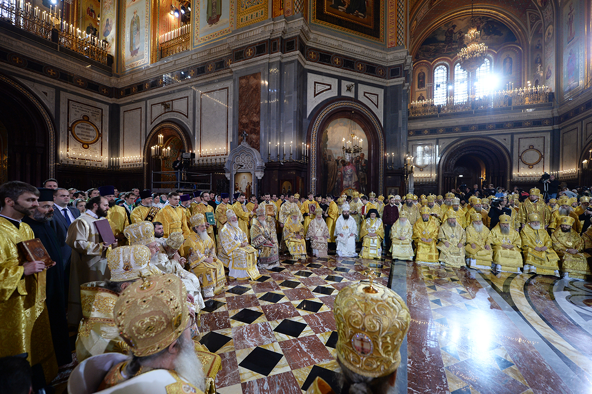 Богослужение возглавили: Блаженнейший Папа и Патриарх Александрийский и всей Африки Феодор II, Блаженнейший Патриарх Святого Града Иерусалима и всей Палестины Феофил III, Святейший Патриарх Московский и всея Руси Кирилл, Святейший и Блаженнейший Католикос-Патриарх всея Грузии Илия II, Святейший Патриарх Сербский, Архиепископ Печский, Митрополит Белградо-Карловацкий Ириней, Блаженнейший Архиепископ Новой Юстинианы и всего Кипра Хризостом II, Блаженнейший Архиепископ Тиранский и всей Албании Анастасий, Блаженнейший Митрополит Варшавский и всей Польши Савва, Блаженнейший Митрополит Чешских земель и Словакии Ростислав, Блаженнейший Архиепископ Вашингтонский, Митрополит всей Америки и Канады Тихон.