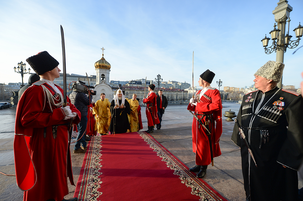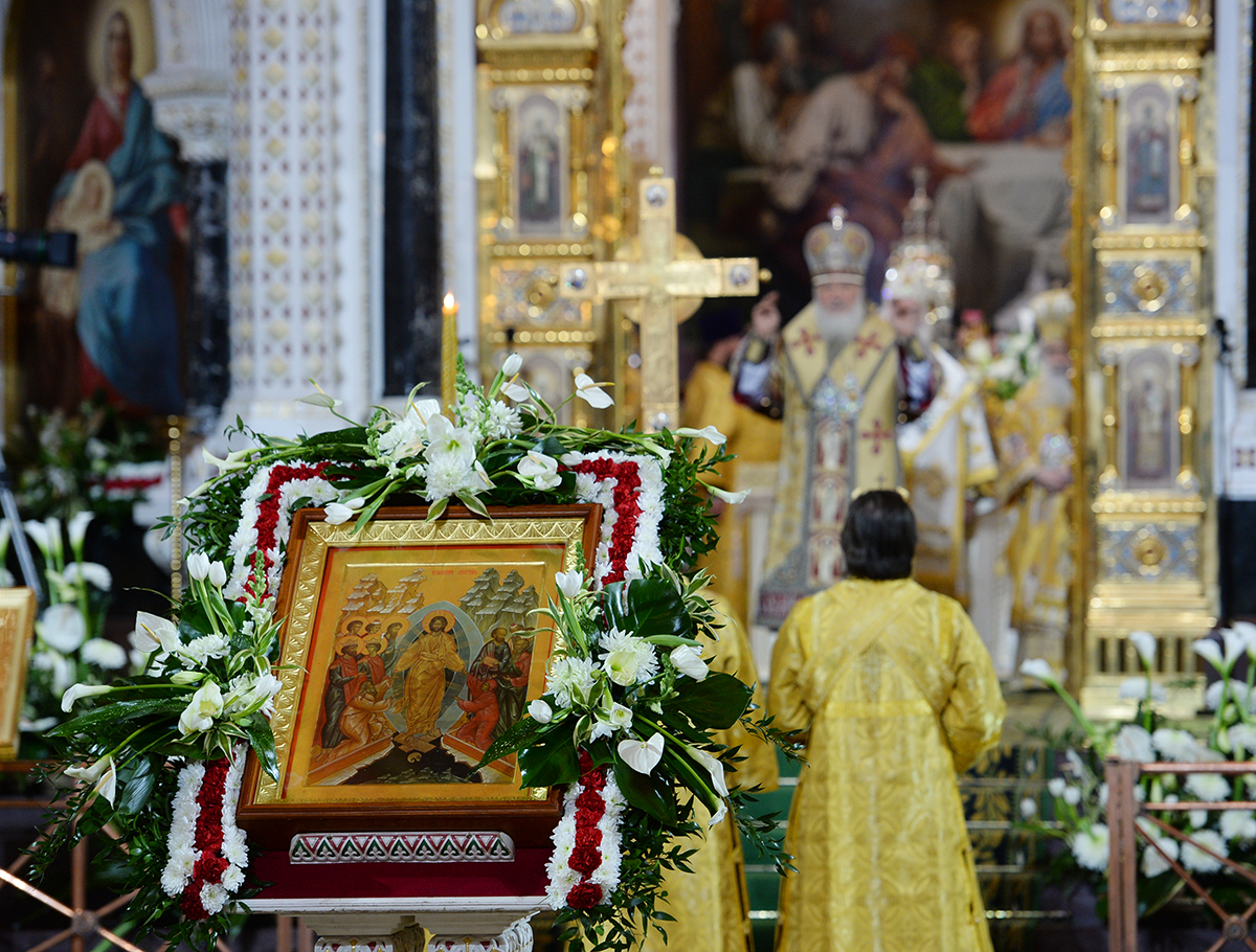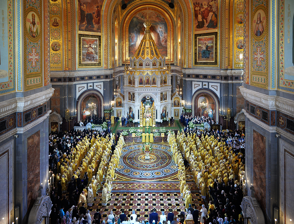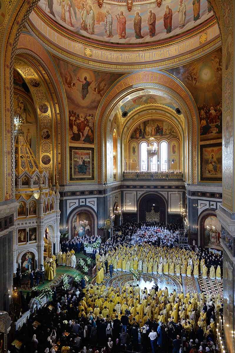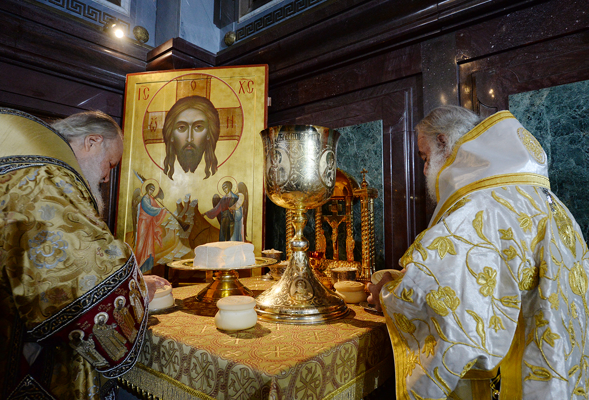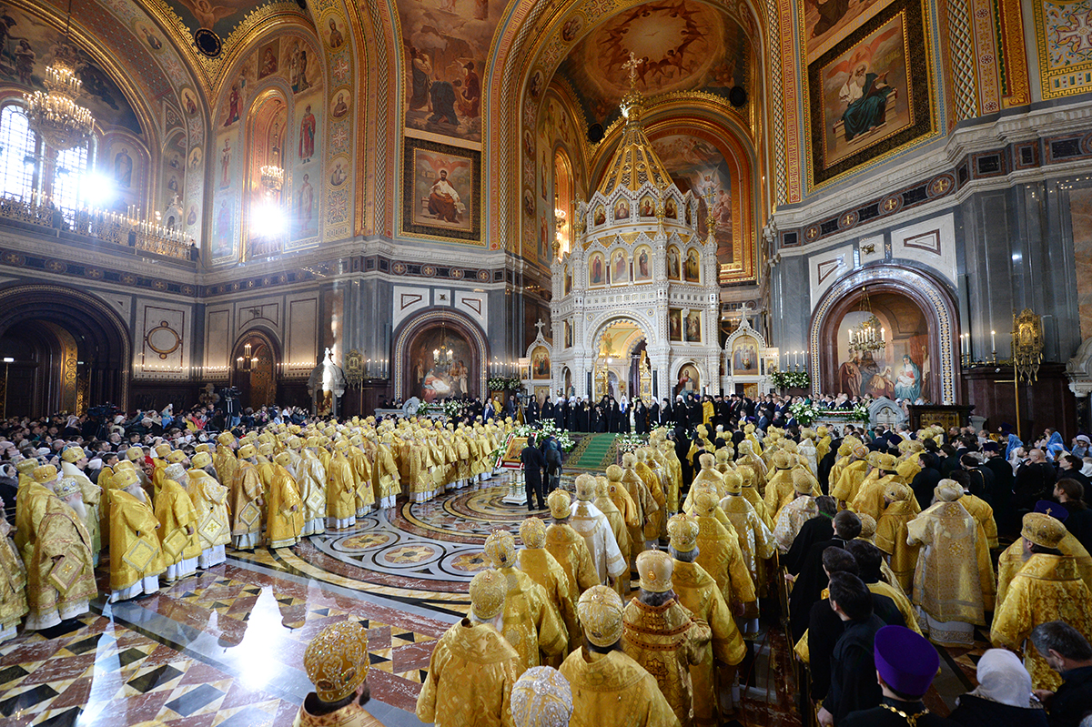 Богослужение возглавили: Блаженнейший Папа и Патриарх Александрийский и всей Африки Феодор II, Блаженнейший Патриарх Святого Града Иерусалима и всей Палестины Феофил III, Святейший Патриарх Московский и всея Руси Кирилл, Святейший и Блаженнейший Католикос-Патриарх всея Грузии Илия II, Святейший Патриарх Сербский, Архиепископ Печский, Митрополит Белградо-Карловацкий Ириней, Блаженнейший Архиепископ Новой Юстинианы и всего Кипра Хризостом II, Блаженнейший Архиепископ Тиранский и всей Албании Анастасий, Блаженнейший Митрополит Варшавский и всей Польши Савва, Блаженнейший Митрополит Чешских земель и Словакии Ростислав, Блаженнейший Архиепископ Вашингтонский, Митрополит всей Америки и Канады Тихон.
