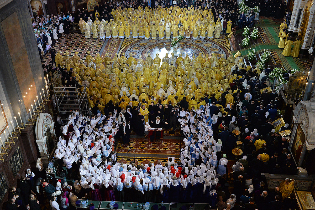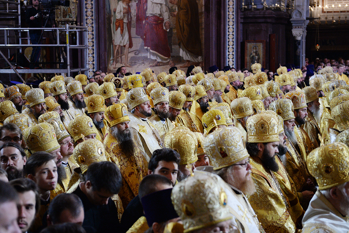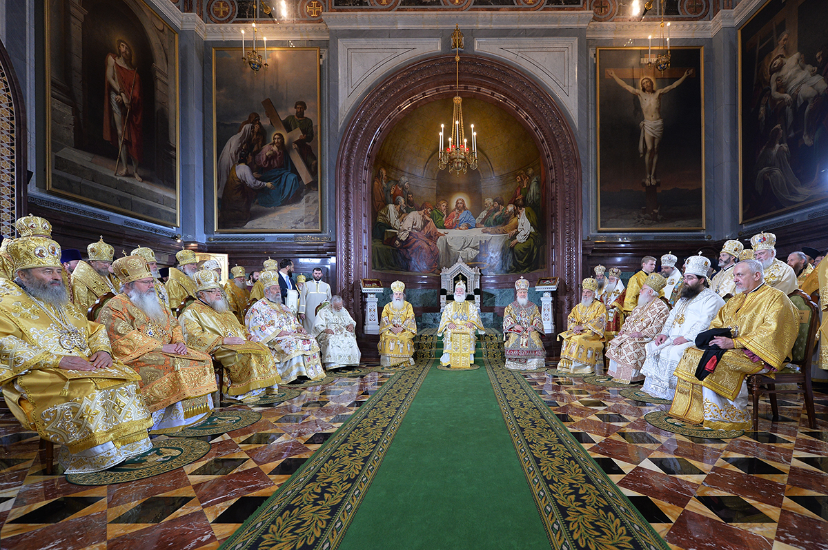 собор архиереев Русской Православной Церкви, представители Поместных Православных Церквей при Московском Патриаршем Престоле, главы синодальных учреждений и зарубежных представительств Московского Патриархата, наместники и настоятели мужских монастырей Русской Православной Церкви, члены делегаций Поместных Православных Церквей в священном сане, члены Епархиального совета г. Москвы, духовенство Московской епархии.