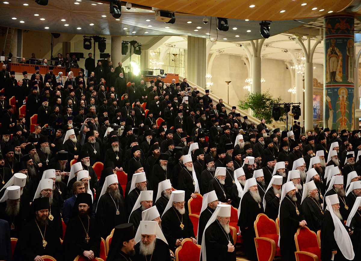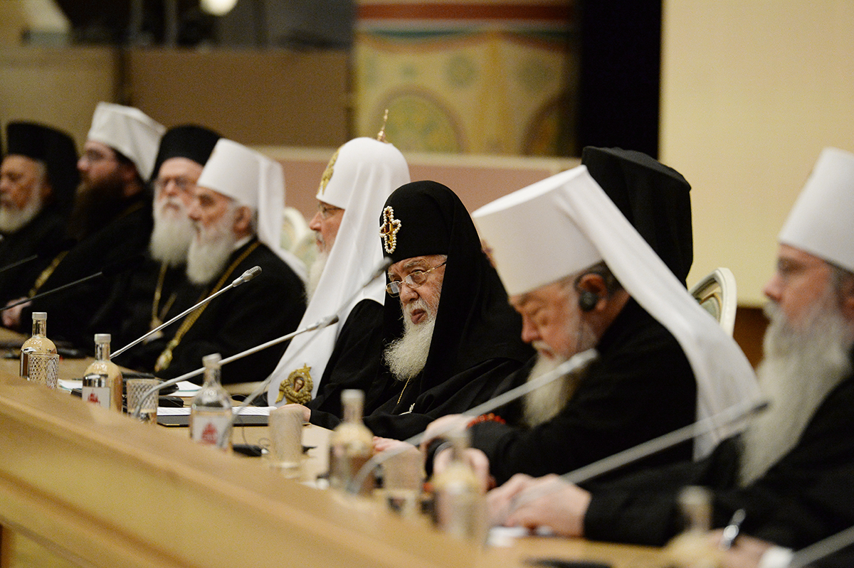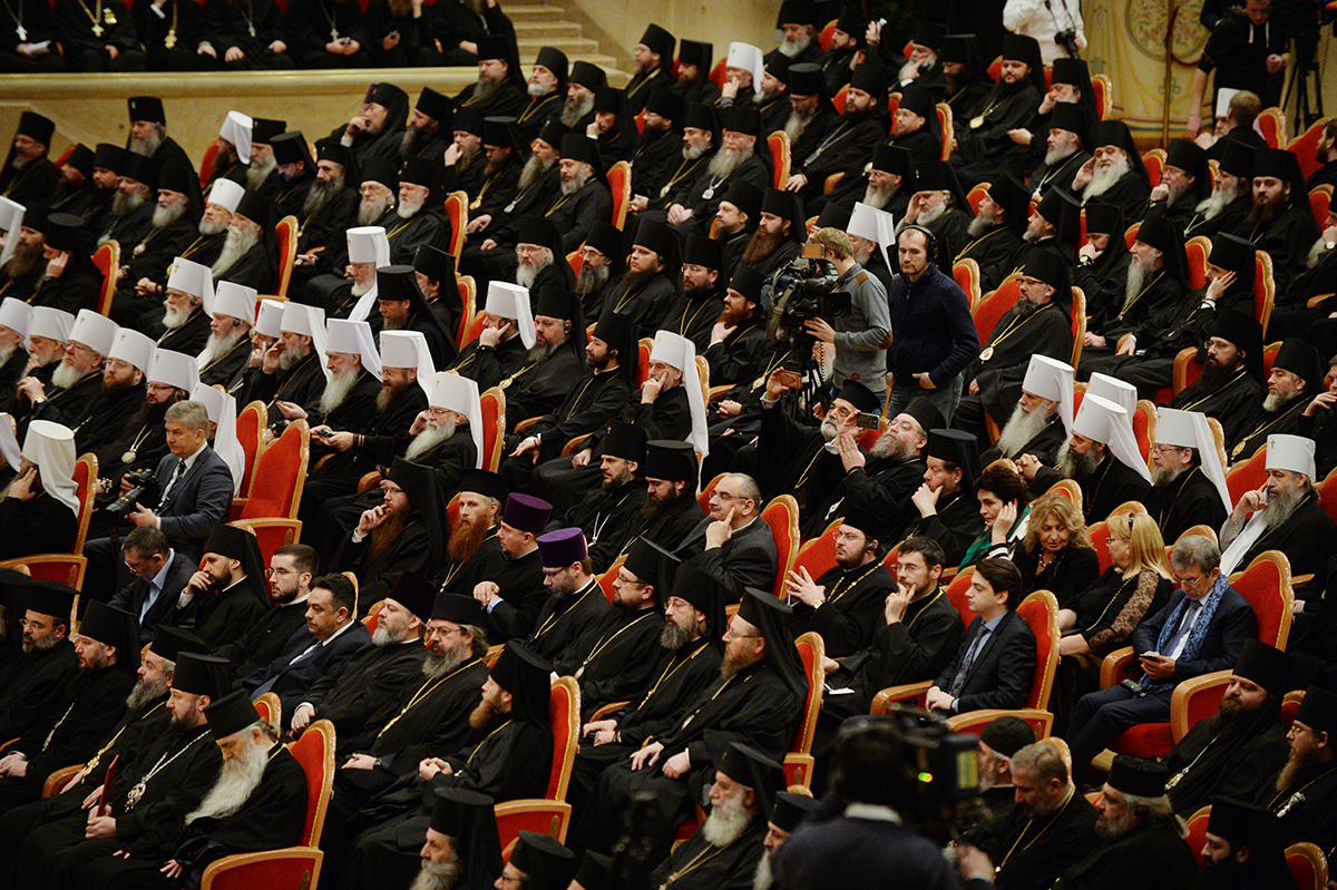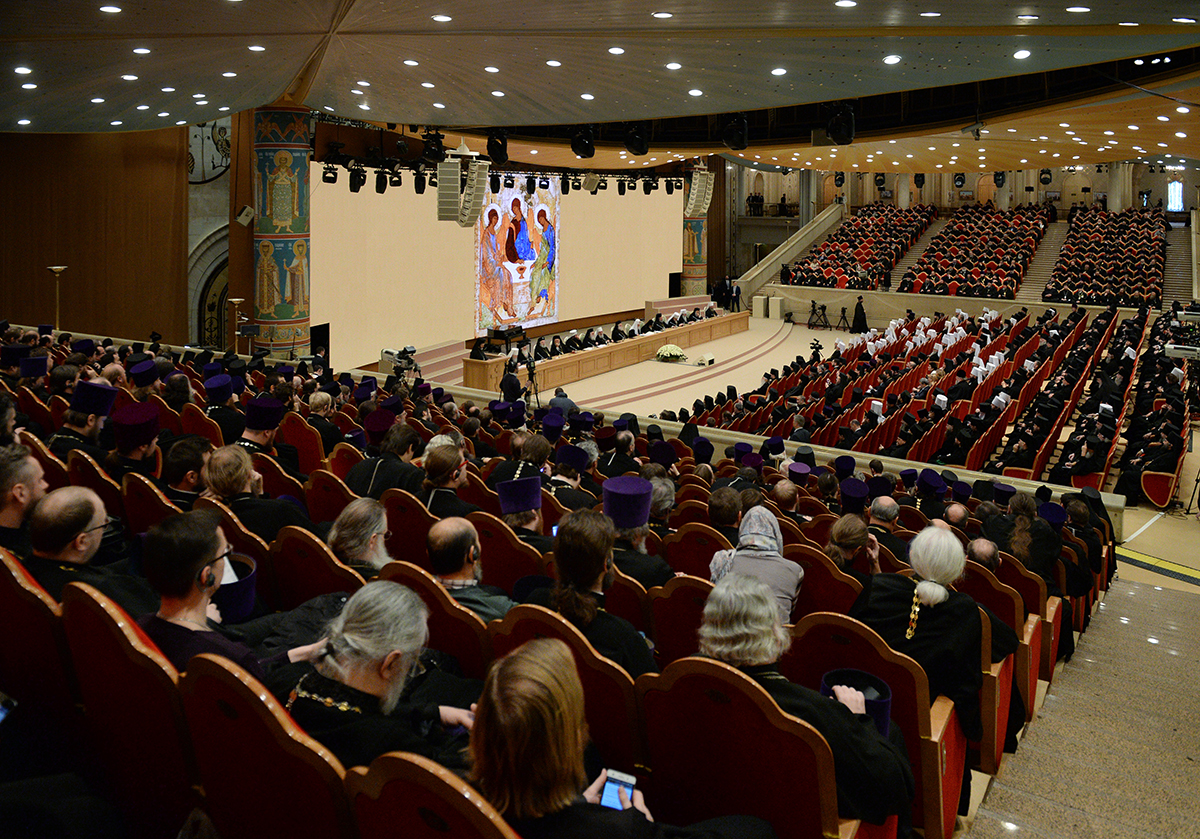 Вместе со Святейшим Патриархом Кириллом в президиуме заседания в Зале церковных соборов присутствовали Предстоятели и представители Поместных Православных Церквей: Блаженнейший Папа и Патриарх Александрийский и всей Африки Феодор II; Святейший и Блаженнейший Католикос-Патриарх всея Грузии Илия II; Святейший Патриарх Сербский, Архиепископ Печский, Митрополит Белградо-Карловацкий Ириней; Блаженнейший Архиепископ Новой Юстинианы и всего Кипра Хризостом II; Блаженнейший Архиепископ Тиранский и всей Албании Анастасий; Блаженнейший Митрополит Варшавский и всей Польши Савва; Блаженнейший Митрополит Чешских земель и Словакии Ростислав; Блаженнейший Архиепископ Вашингтонский, Митрополит всей Америки и Канады Тихон; а также представители делегаций Поместных Церквей: митрополит Филиппопольский Нифон (Антиохийский Патриархат), митрополит Вострский Тимофей (Иерусалимский Патриархат); митрополит Тырговиштский Нифон, (Румынский Патриархат); митрополит Западно- и Среднеевропейский Антоний (Болгарский Патриархат); митрополит Димитриадский Игнатий (Элладская Православная Церковь). В числе присутствовавших в президиуме были Блаженнейший митрополит Киевский и всея Украины Онуфрий, митрополит Крутицкий и Коломенский Ювеналий.