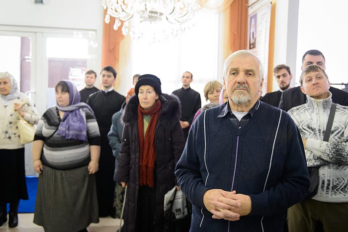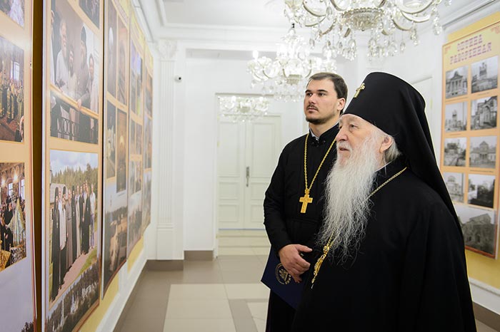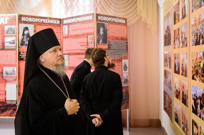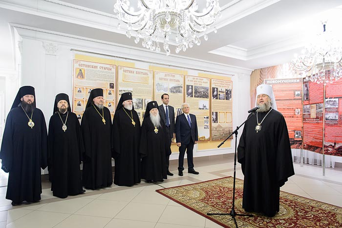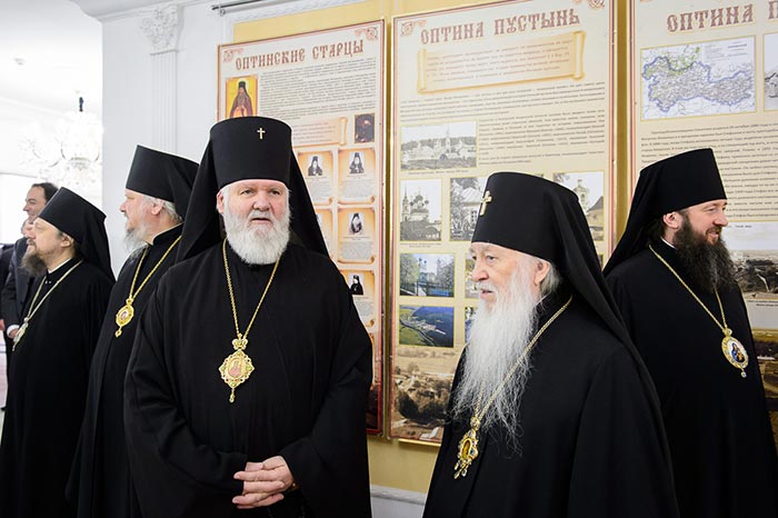 Перед началом работы конференции в холле духовно-культурного центра состоялось открытие выставки «Оптинского старчества преемник», посвященной истории Оптиной пустыни, жизненному пути и исповедническому подвигу преподобного Севастиана – последнего Оптинского старца. С концепцией экспозиции гостей ознакомил руководитель издательского отдела Митрополичьего округа архимандрит Иосиф (Еременко).