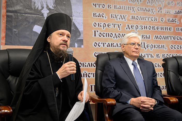 Работа форума продолжилась выступлением епископа Каскеленского Геннадия. «Есть память людская и память Божия. Отец Павел Флоренский в начале ХХ века высказал такую мысль: «Когда мы воспеваем нашим усопшим «Вечную память», то мы не просим, чтобы в памяти поколений сохранялись воспоминания об усопших, мы просим, чтобы Бог помнил усопших». Это очень верное замечание. «Вечная память» в наших молитвах для того, чтобы Бог нас не забыл. Это то же самое, что молитва, которую за каждой литургией мы произносим: «Помяни нас во Царствии Своем». Есть некое глубокое отличие памяти людской и памяти Божией о нас. Я хотел бы показать это отличие на примере событий современника – преподобного Севастиана Карагандинского, 50-летие со дня преставления которого мы отмечаем в эти дни», - так определил тему своего доклада владыка. В рассказе епископа Геннадия был дан сравнительный анализ ярких духовных и светских деятелей 60-х годов прошлого столетия – современников преподобного Севастиана, и обозначен их след в человеческой истории. Владыка упомянул святителя Иоанна Шанхайского, поэтессу А.Ахматову, Л.И. Брежнева, А.Н. Косыгина, процесс над первыми советскими диссидентами Андрее Синявском и Юрии Даниэле.
