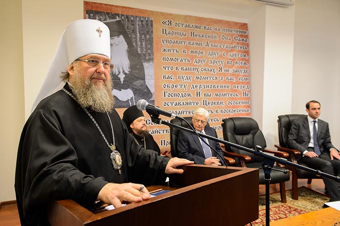 Череду выступлений своим докладом открыл митрополит Астанайский и Казахстанский Александр. «Уходящий в историю 2016 год в Казахстане проходил под знаком юбилея – 50-летия со дня окончания земной жизни выдающегося подвижника благочестия, исповедника веры, последнего Оптинского старца и небесного покровителя Караганды, преподобного схиархимандрита Севастиана (Фомина). Проведение юбилейного празднования в Казахстане благословил Предстоятель Русской Православной Церкви Святейший Патриарх Московский и всея Руси Кирилл. Торжественным богослужением в главном храме Казахстанского Митрополичьего округа – Успенском кафедральном соборе Астаны и научно-практической конференцией в стенах духовно-культурного центра имени равноапостольных Кирилла и Мефодия мы завершаем череду праздничных мероприятий, посвященных преподобному Севастиану», – сказал в начале своего выступления Глава Казахстанского Митрополичьего округа. В докладе митрополита Александра были представлены основные события в жизни Карагандинского старца с анализом исторического контекста и рассмотрены особенности душепастырской деятельности преподобного.