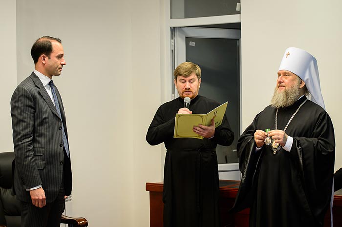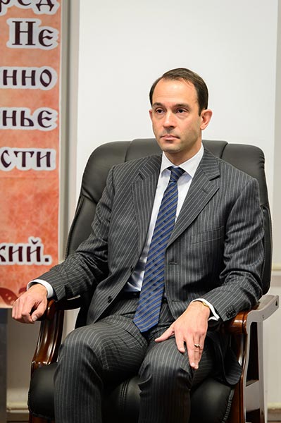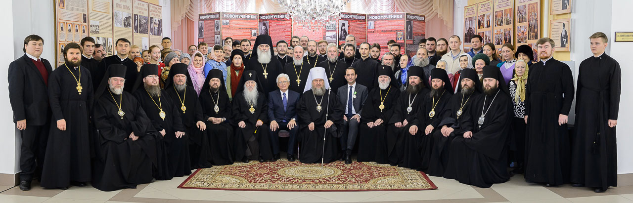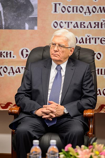 К участникам мероприятия обратился Чрезвычайный и Полномочный посол Российской Федерации в Республике Казахстан М.Н. Бочарников: «Эта конференция посвящена очень важному вопросу – памяти выдающегося человека, прославленного как святого, преподобного Севастиана. Люди такого масштаба периодически, хоть и не очень часто, появляются и в рядах Церкви, и в рядах общества, и они своим примером, трудами, отношением к жизни и людям становятся маяками духовности, теми примерами, вокруг которых сплачиваются люди в самые непростые времена. Несомненно, преподобный Севастиан был такой фигурой. И чем дальше мы отходим от его времени, тем это становится виднее». «Преподобный Севастиан в одни из самых сложных периодов нашей страны – в эпоху политических гонений, репрессий, в период Великой Отечественной войны, во время восстановления нашего государства и возрождения нашего народа после войны – сыграл огромную роль, которая снискала ему глубокое уважение среди всех, кто знал его, и даже среди тех, кто не его знал лично. Об этом сегодня очень ярко рассказал владыка митрополит. Действительно, если поднять исторические документы, многие из которых представлены на сегодняшней выставке, мы видим факты народной любви, адресованной этому замечательному человеку. Его слава простирается далеко за пределы Михайловки, Караганды и области. Хочу поделиться одним примером, свидетелем которого я был. В 2010 году на открытии памятника великому русскому режиссеру Станиславскому в Караганде собрались высокие политические деятели, представители театра и искусства. Прибывала делегация театра имени Моссовета из Москвы во главе с актером Светловым. Они должны были прибыть в Караганду на самолете премьер-министра. Но за день до вылета актеры отправились в Караганду на машине ради того, чтобы поклониться мощам святого преподобного Севастиана. Как они потом рассказали, еще в Москве они поставили в качестве своей главной задачи посещение тех мест, где жил и подвизался преподобный. Ярким и запоминающимся становится образ этого святого. Мы должны этому радоваться, потому что это сплачивает наши народы, государства России и Казахстана, служит нам всем во благо и дает примеры духовной крепости. В завершение приветствия хочу поблагодарить Казахстанский Митрополичий округ и Русскую Православную Церковь в целом за сохранение памяти преподобного, которая сегодня позволяет нам с уверенностью и гордостью говорить о том, что наша духовная сила была, есть и будет», - сказал в своем выступлении посол России.