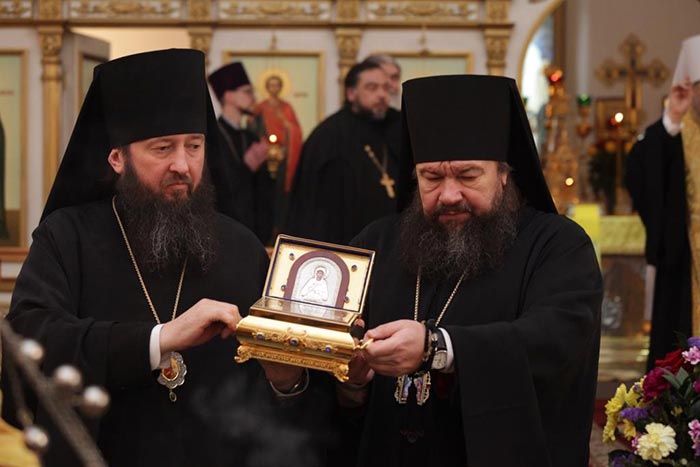 Митрополит Александр доставил для молитвенного поклонения и духовного укрепления паствы Усть-Каменогорской епархии ковчег с мощами блаженной старицы Матроны Московской.