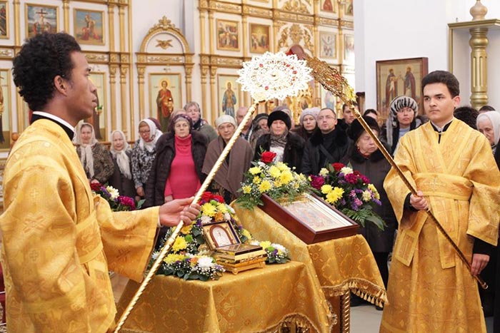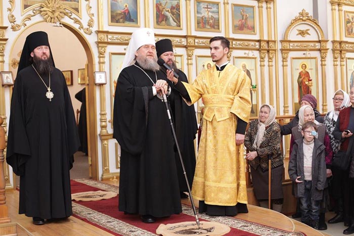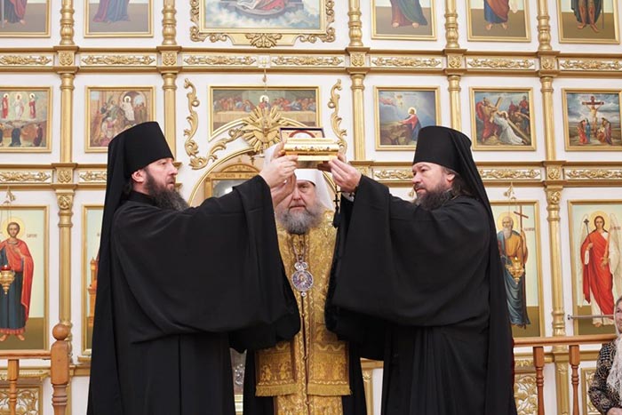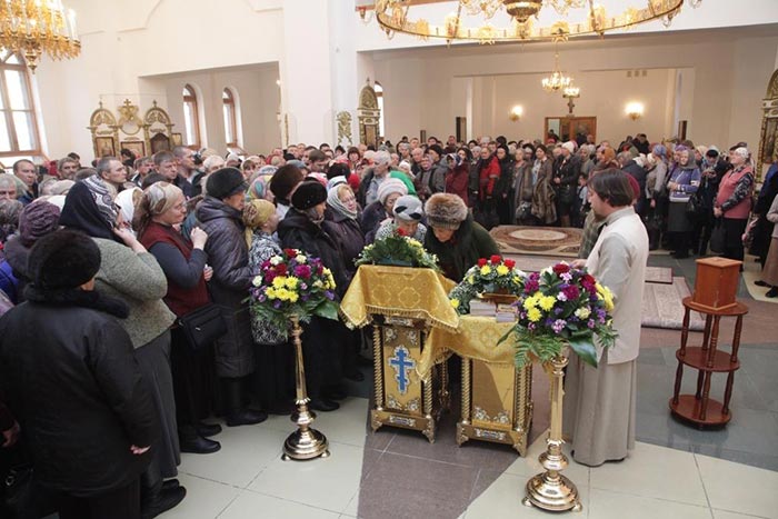 Ковчег с честными мощами блаженной Матроны был перевезен в кафедральный собор города во имя апостола Андрея Первозванного, где митрополит Александр возглавил молебен, положивший начало поклонению святыне на земле Рудного Алтая.