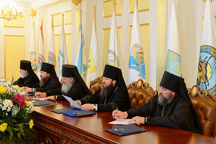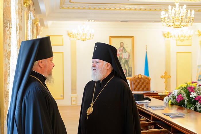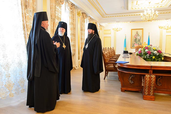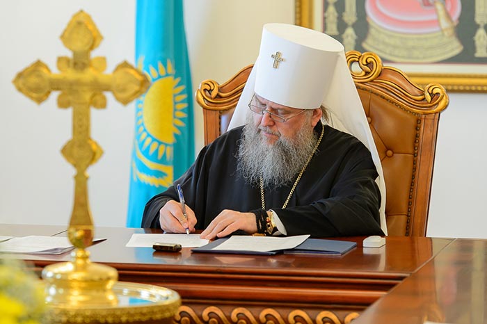 Глава Казахстанского Митрополичьего округа рассказал членам Синода о своем участии в совместном заседании палат Парламента Республики Казахстан, о работе в расширенном заседании Совета Ассамблеи народа Казахстана и участии в XXV сессии Ассамблеи народа Казахстана «Стабильность, единство, согласие – основа модернизации», состоявшейся 26 апреля текущего года под председательством Президента Республики Казахстан Н.А. Назарбаева, и подписании Соглашения о сотрудничестве между министерством по делам религий и гражданского общества Республики Казахстан и Митрополичьим округом Русской Православной Церкви в Республике Казахстан.