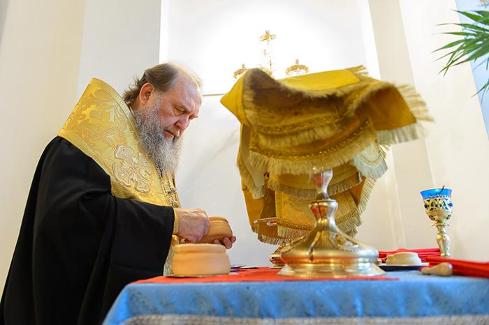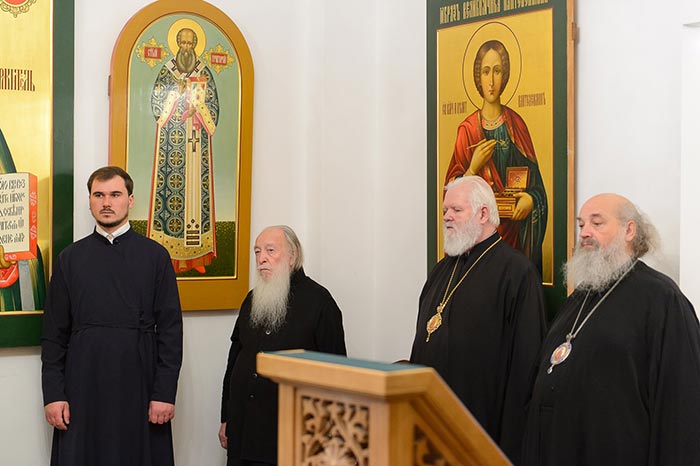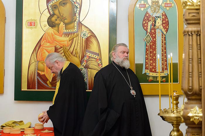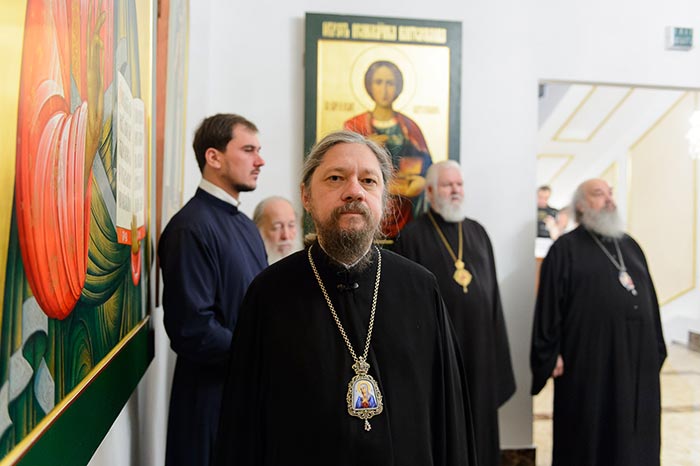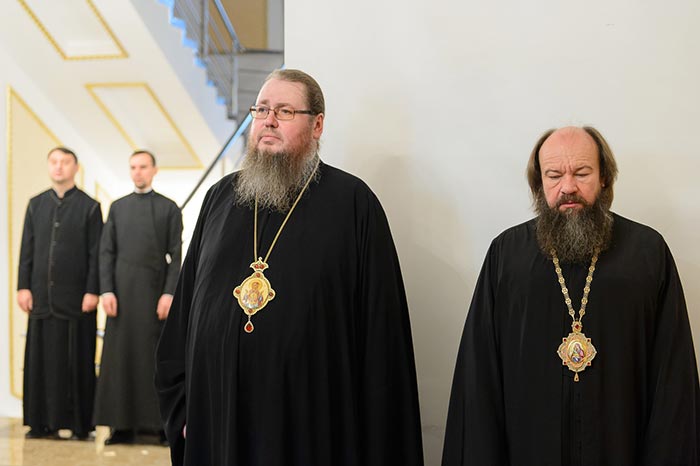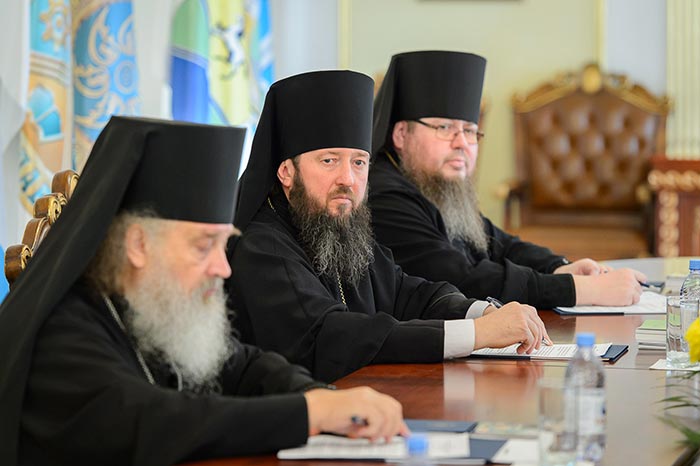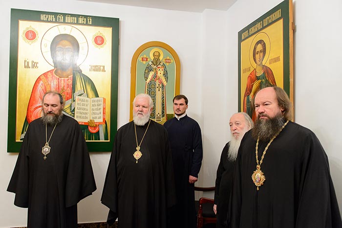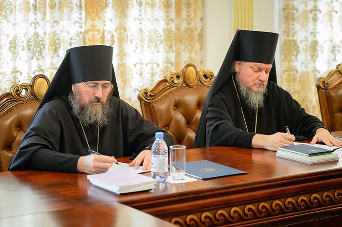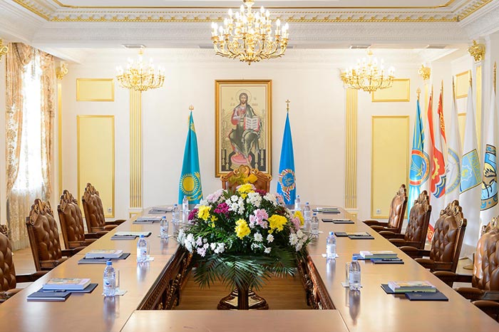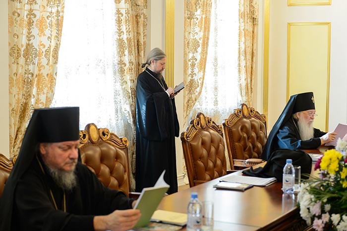 Заседание было предварено служением Божественной Литургии в домовом храме Синода в честь Астанайской-Почаевской иконы Божией Матери, за которой молились и приобщались святых Христовых Таин казахстанские архипастыри.