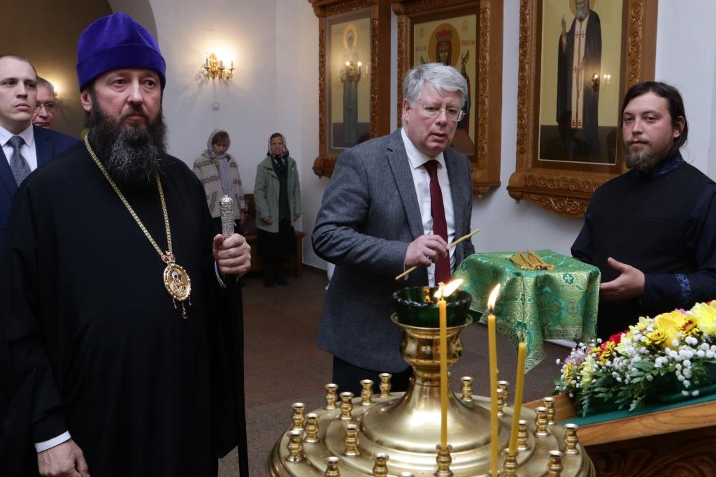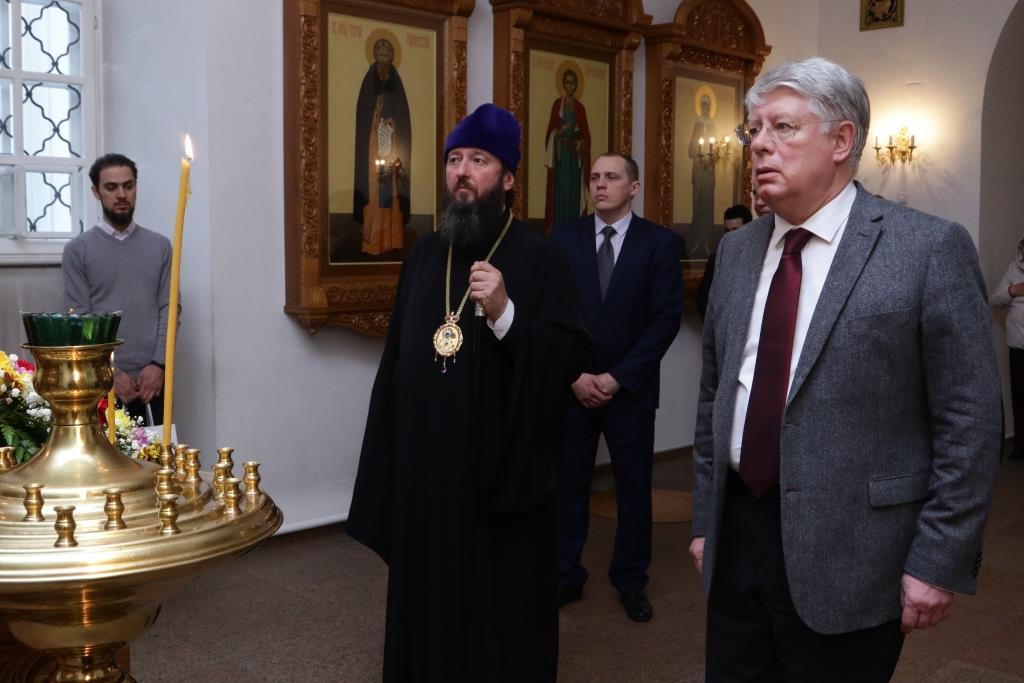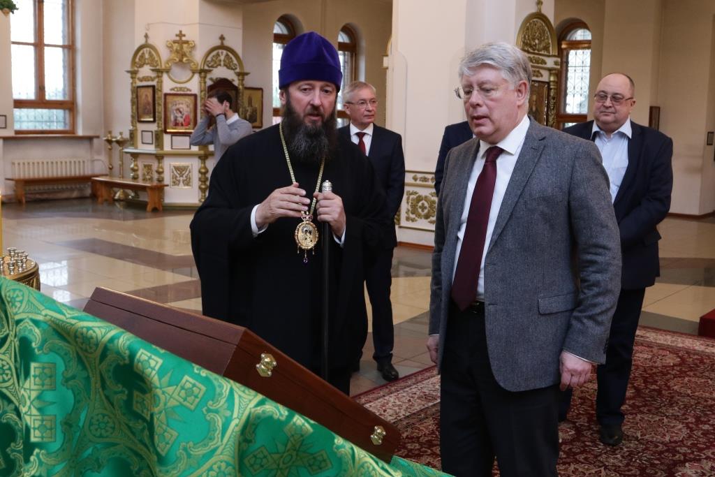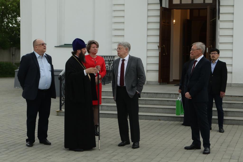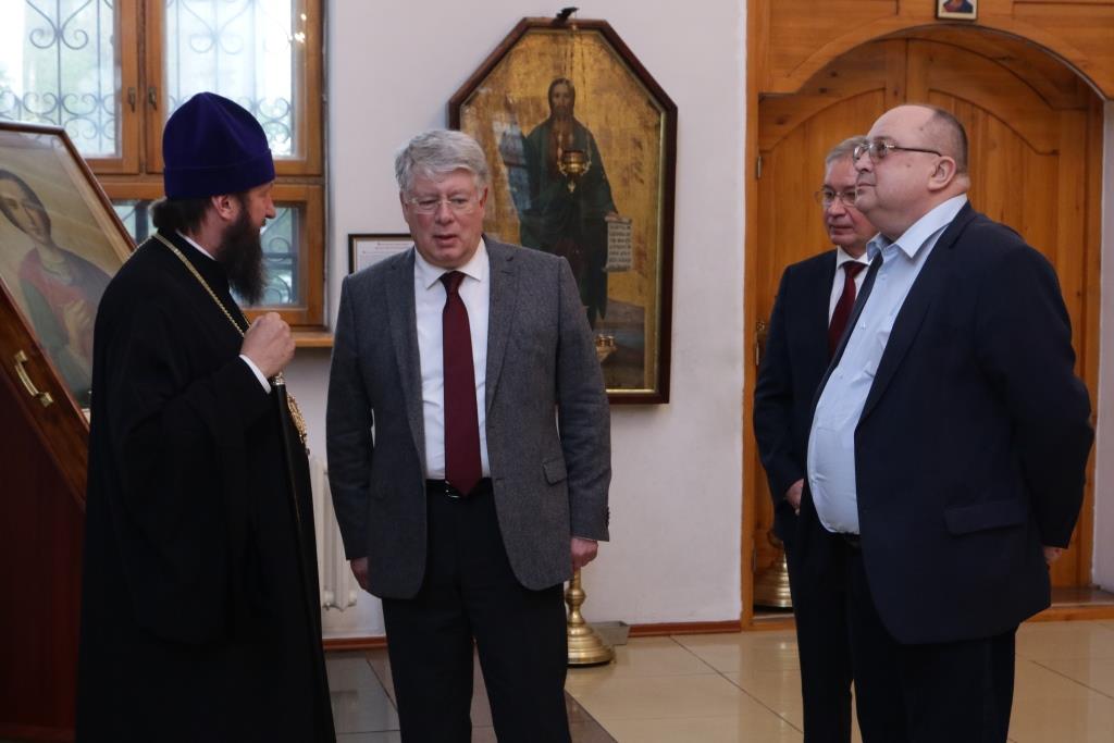 Российского посланника встречали епископ Усть-Каменогорский и Семипалатинский Амфилохий, секретарь епархии диакон Илия Кван, ключарь Андреевского кафедрального собора иеромонах Никодим (Авдеев). Дипломат посетил Андреевский кафедральный собор, Троицкий крепостной собор, братский корпус монастыря, также Алексей Николаевич ознакомился с ходом строительства Духовно-административного корпуса Усть-Каменогорской епархии. В ходе общения епископ Амфилохий рассказал господину послу об истории Православной Церкви на землях Рудного Алтая и об осуществлении различных просветительских, молодежных и социальных проектов Усть-Каменогорской епархии. Встреча прошла в теплой и дружеской обстановке.