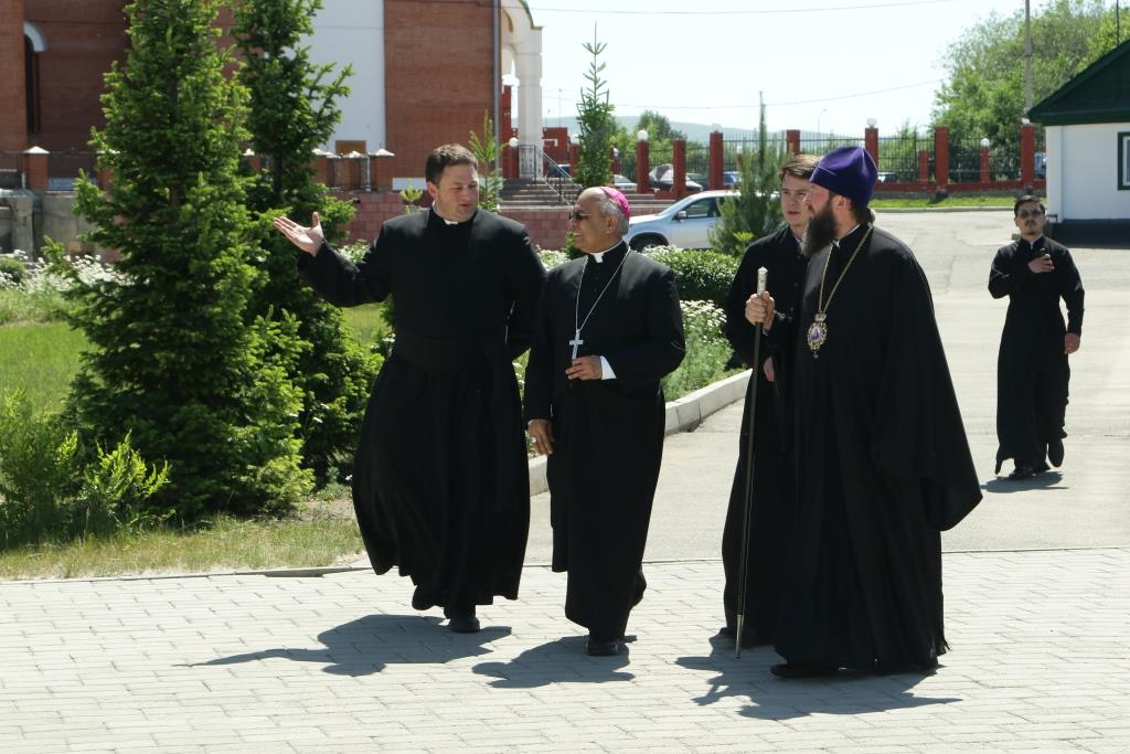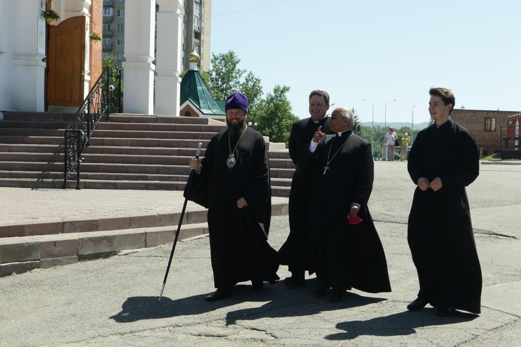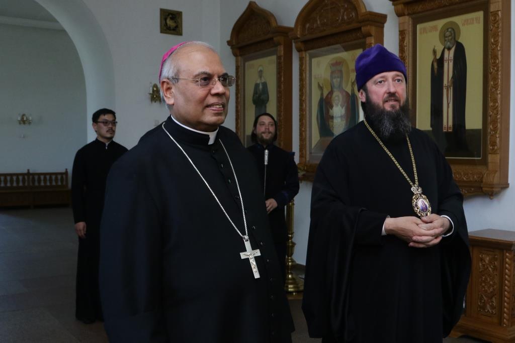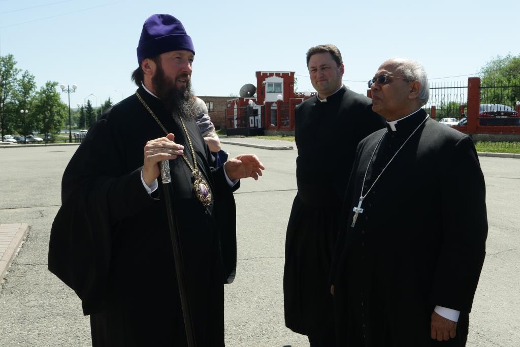 Прелат посетил Андреевский кафедральный собор, Троицкий крепостной собор и братский корпус Свято-Троицкого мужского монастыря. В ходе общения епископ Амфилохий рассказал архиепископу Фрэнсису Ассизи Чулликатту об истории Православной Церкви на землях Восточного Казахстана и о различных просветительских, молодежных и социальных проектах Усть-Каменогорской епархии. Встреча прошла в теплой и дружеской обстановке.
