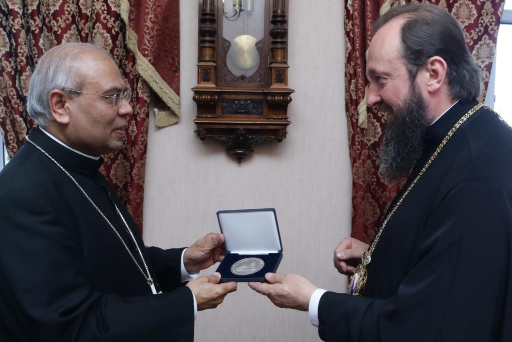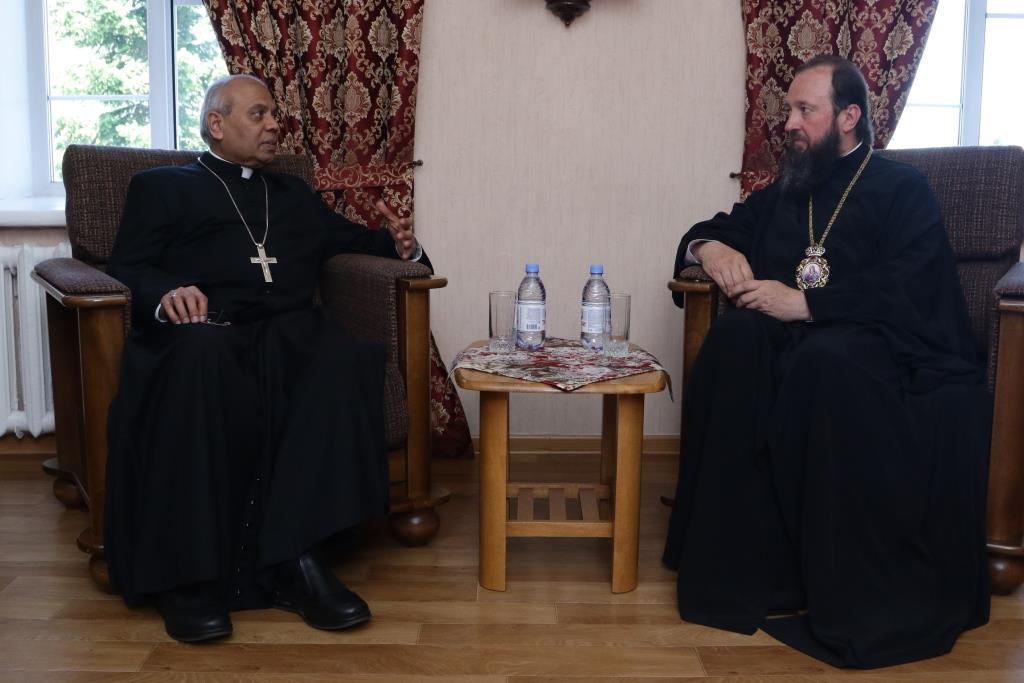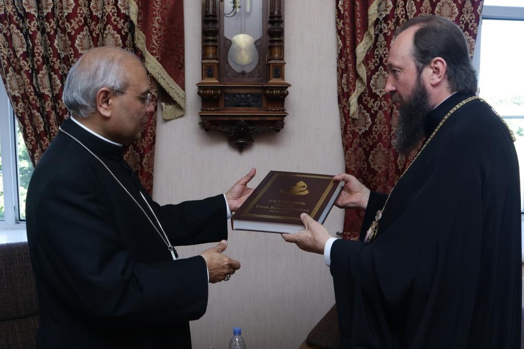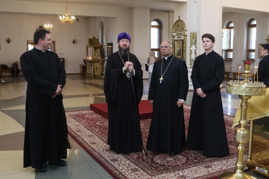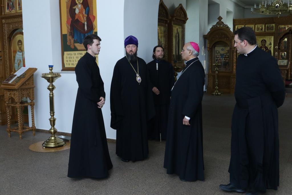 Прелат посетил Андреевский кафедральный собор, Троицкий крепостной собор и братский корпус Свято-Троицкого мужского монастыря. В ходе общения епископ Амфилохий рассказал архиепископу Фрэнсису Ассизи Чулликатту об истории Православной Церкви на землях Восточного Казахстана и о различных просветительских, молодежных и социальных проектах Усть-Каменогорской епархии. Встреча прошла в теплой и дружеской обстановке.