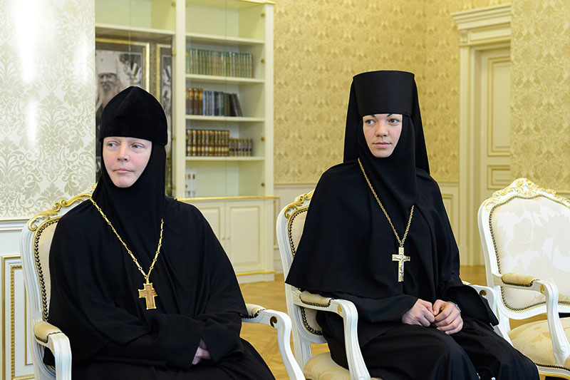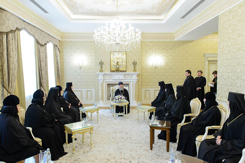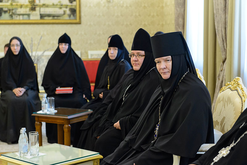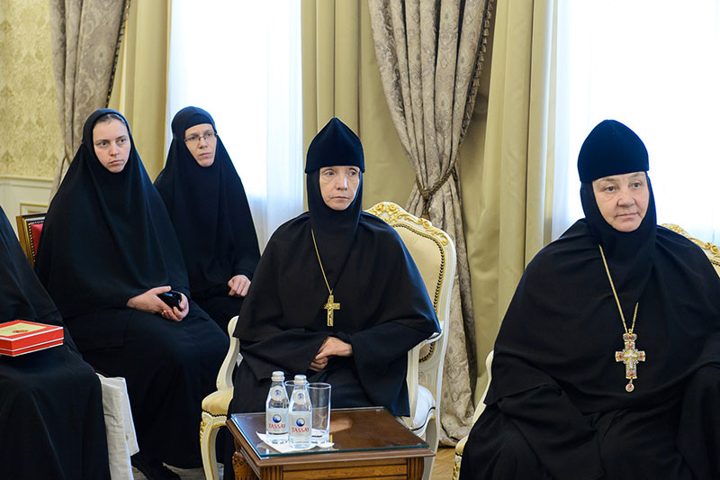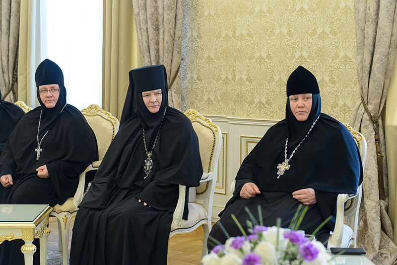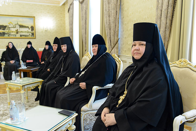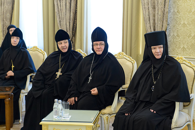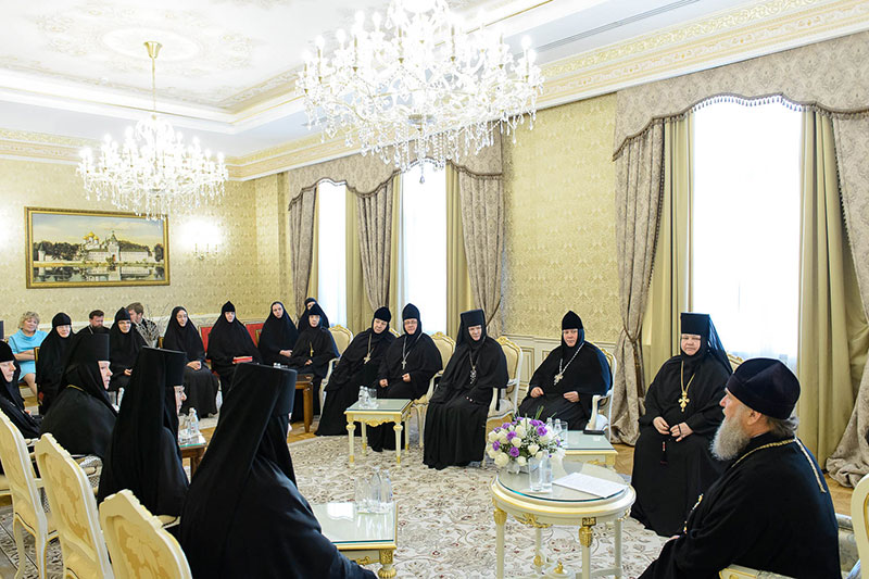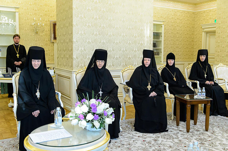 Во встрече приняли участие: заместитель председателя Синодального отдела по монастырям и монашеству, настоятельница Зачатьевского ставропиагиального монастыря игумения Иулиания (Каледа) (Московская епархия), настоятельница Кресто-Воздвиженского Иерусалимского ставропигиального монастыря игумения Екатерина (Чайникова) (Московская епархия), настоятельница Марфо-Мариинского монастыря на святой горе Грабарке игумения Ермиония (Щур) (Польская Православная Церковь), настоятельница Богородице-Рождественского монастыря в Белостоке игумения Анастасия (Харкевич) (Польская Православная Церковь), настоятельница Спасо-Преображенского монастыря в городе Чебоксары игумения Сергия (Рузавина) (Чувашская митрополия), настоятельница Успенского монастыря в городе Александров игумения Иоанна (Смуткина) (Александровская епархия), настоятельница Свято-Троицкого Никольского монастыря в городе Ташкенте игумения Екатерина (Мальгина) (Ташкентская епархия), настоятельница Свято-Тихвинского Богородицкого монастыря в городе Бузулук игумения Пантелеимона (Кривенкова) (Бузулукская епархия), настоятельница Покровского монастыря в городе Уральске игумения Варвара (Морозова) (Уральская епархия), настоятельница Знаменско-Абалацкого Петропавловского монастыря в городе Семипалатинске игумения Марионилла (Помельникова) (Усть-Каменогорская епархия).
