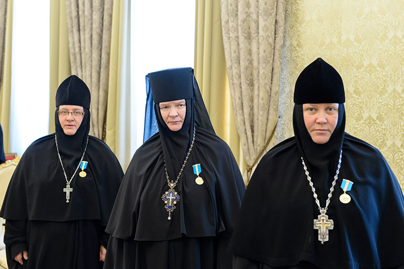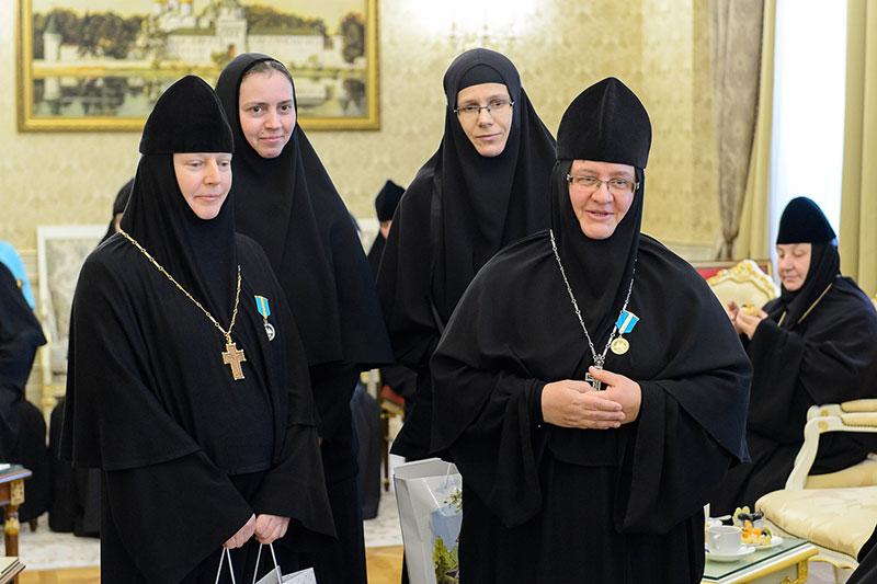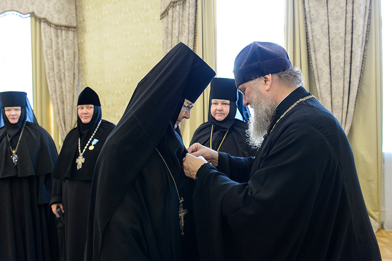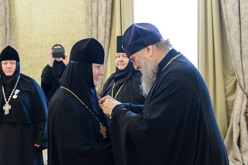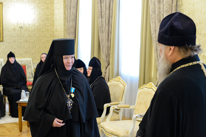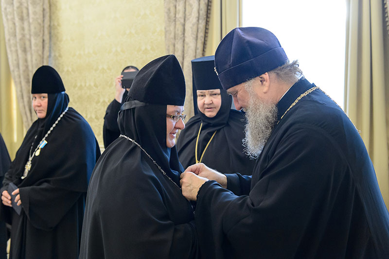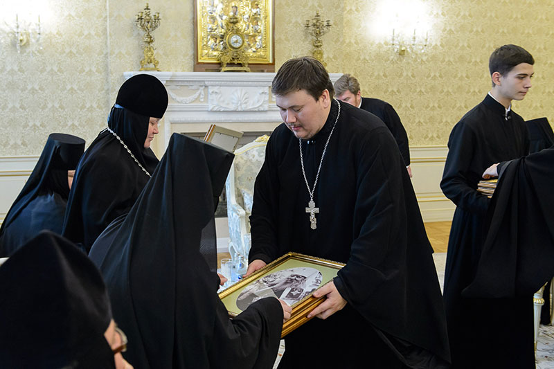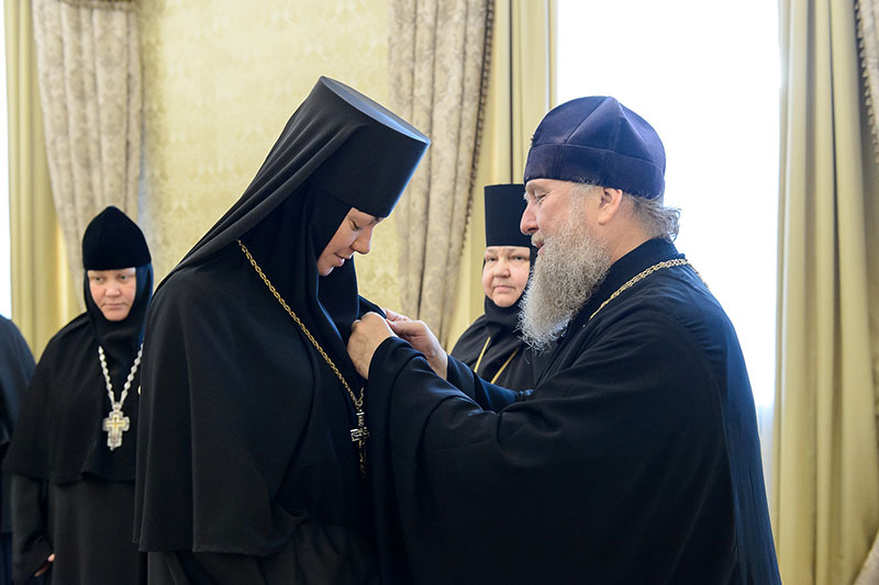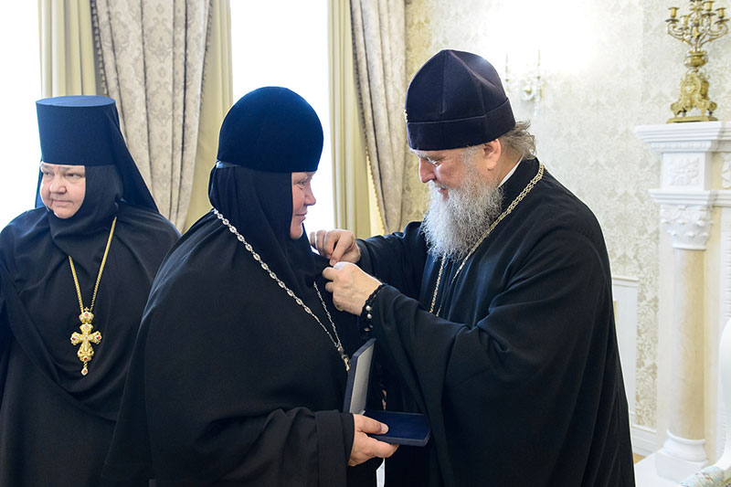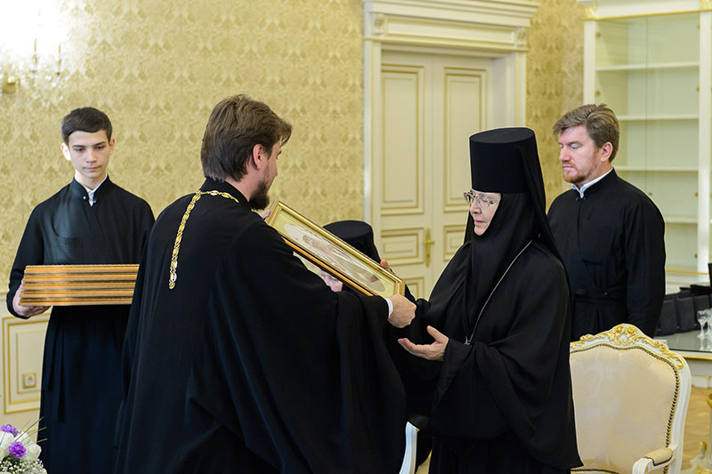 Иерарх вручил игумениям юбилейные медали «145 лет учреждения Туркестанской епархии» и подарил в благословение портреты исповедника веры и подвижника благочестия митрополита Иосифа (Чернова). Каждая участница встречи получила в подарок плакетку с изображением Софийского собора Иверско-Серафиовского монастыря, созданную специально к юбилейным датам обители, подборку изданий, рассказывающих о Православии в Казахстане, и музыкальные диски с записями Митрополичьего хора под управлением Заслуженного деятеля искусств России О.Н.Овчинникова.