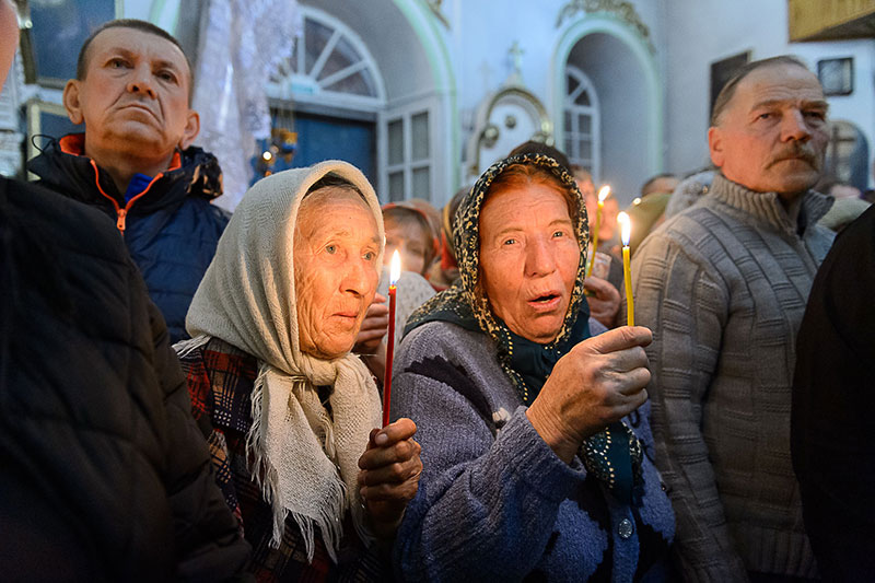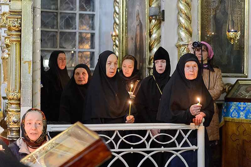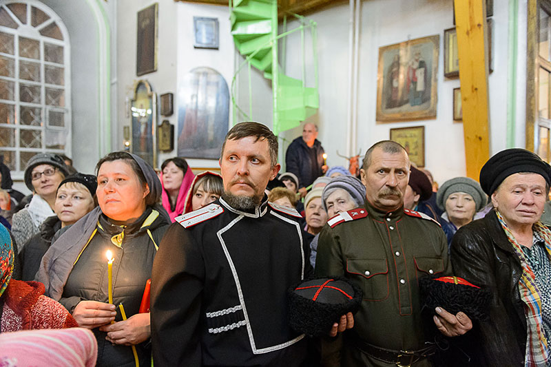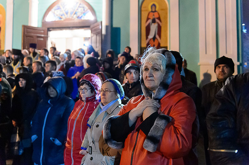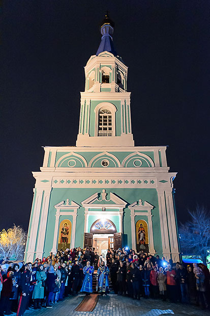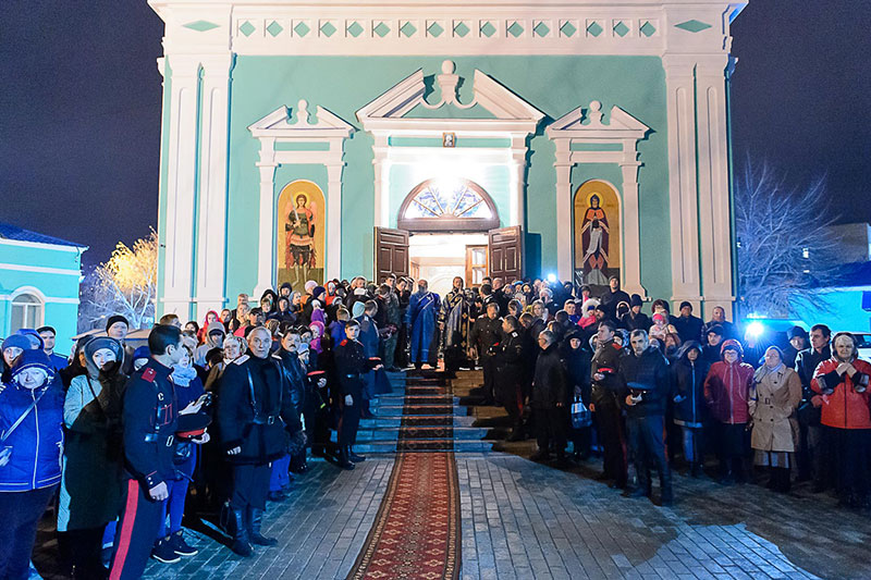 За богослужением молились настоятельница Петропавловского Знаменско-Абалацского женского монастыря Семипалатинска игумения Марионилла с сестрами обители.