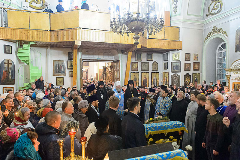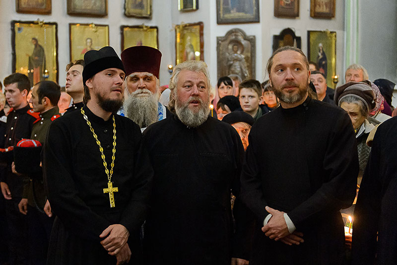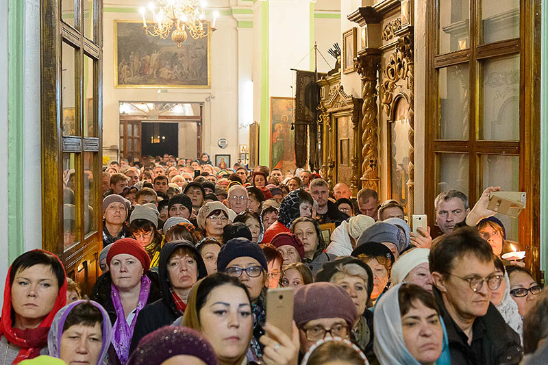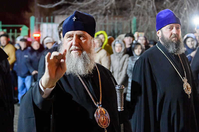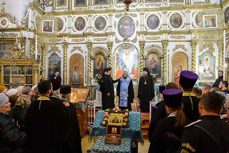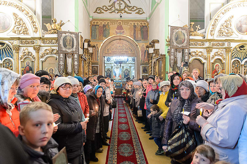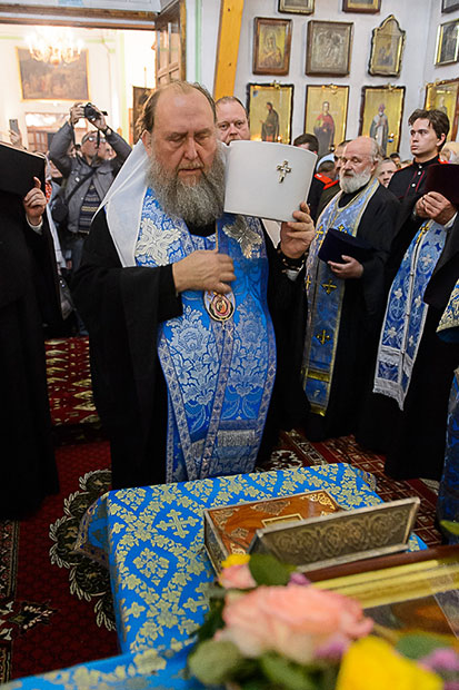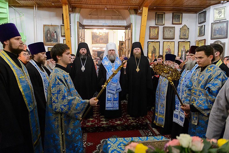 В главном храме Симипалатинска Предстоятель Православной Церкви Казахстана совершил молебен святителю Николаю. Митрополиту Александру сослужили епископ Усть-Каменогорский и Семипалатинский Амфилохий, епископ Рубцовский и Алейский Роман (Алтайская митрополия Русской Православной Церкви), духовенство, прибывшее на праздник с архипастырями, клирики Усть-Каменогорской епархии.