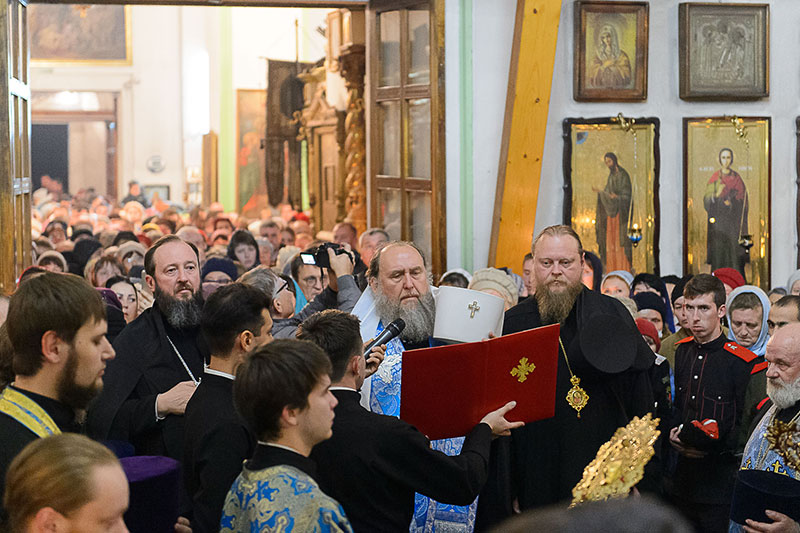 По окончании молебна митрополит Александр тепло поздравил Преосвященных владык, духовенство, монашествующих и многочисленных прихожан и паломников с радостью принесения на землю Рудного Алтая честных мощей святителя и чудотворца Николая, архиепископа Мир Ликийских, и обратился со словом назидания.