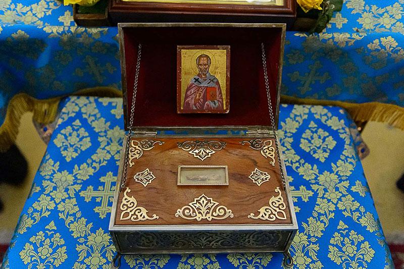 В Воскресенском кафедральном соборе Семипалатинска мощи Мирликийского святителя встречали благочинный Семипалатинского церковного округа митрофорный протоиерей Феодор Проскурин и духовенство Усть-Каменогорской епархии.