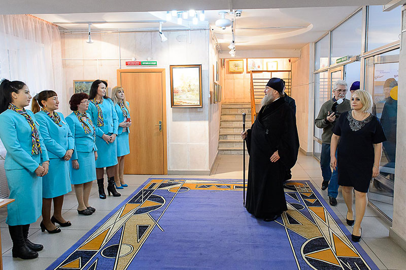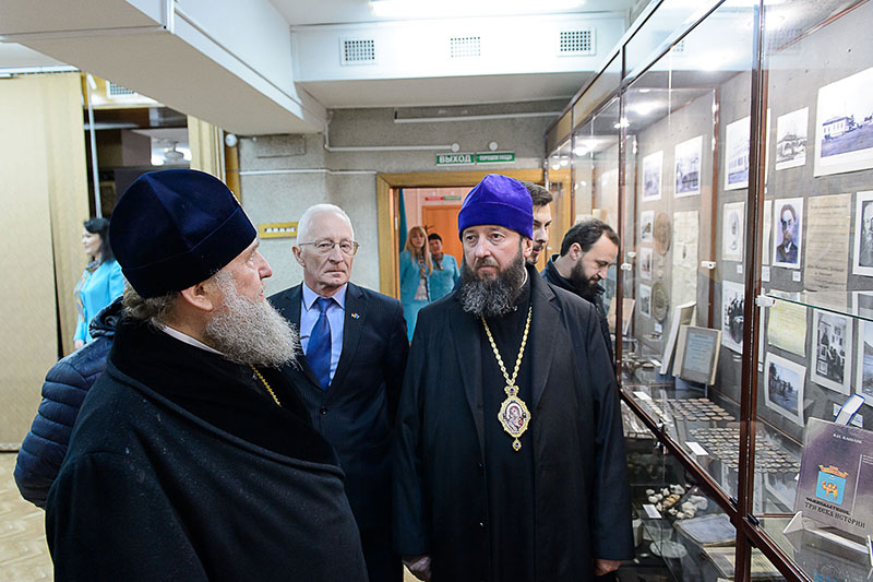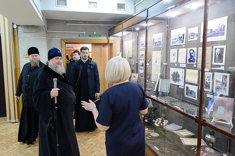 Владыку митрополита, архипастырей и священнослужителей встречала директор музея Татьяна Какимовна Автушко, которая провела для гостей экскурсию.
