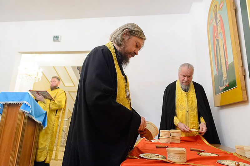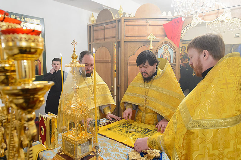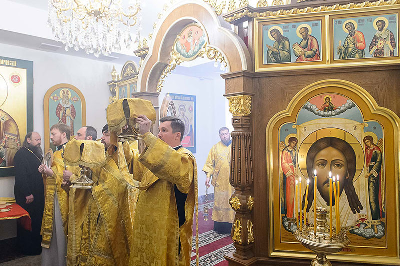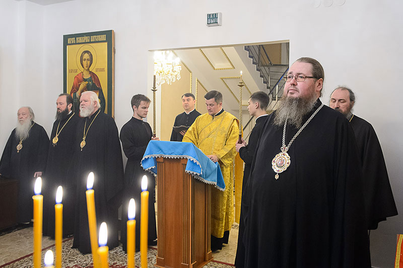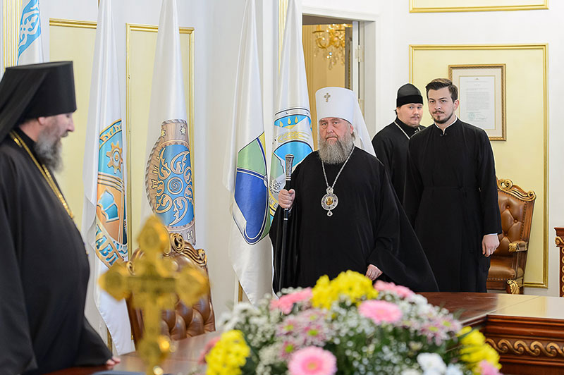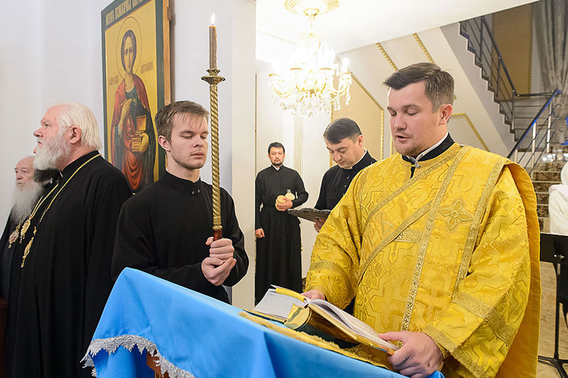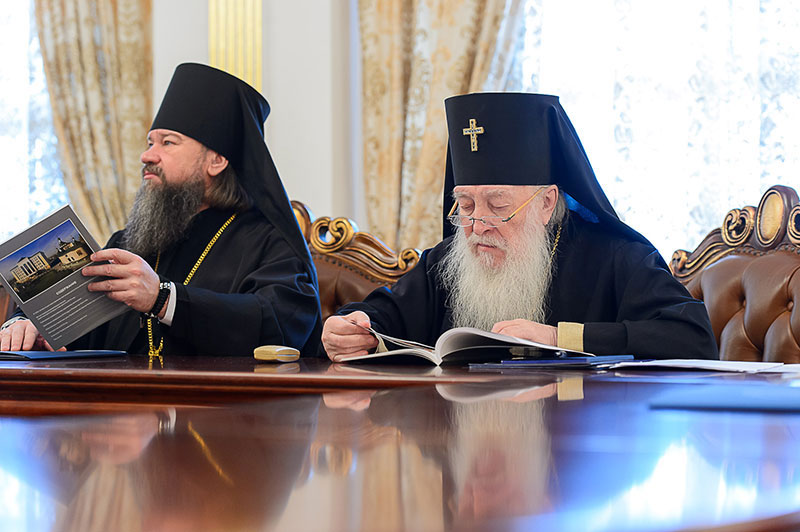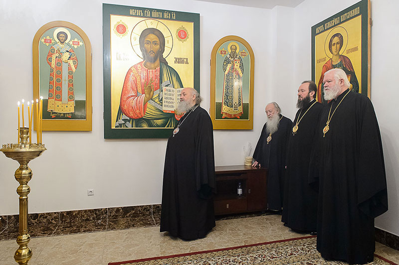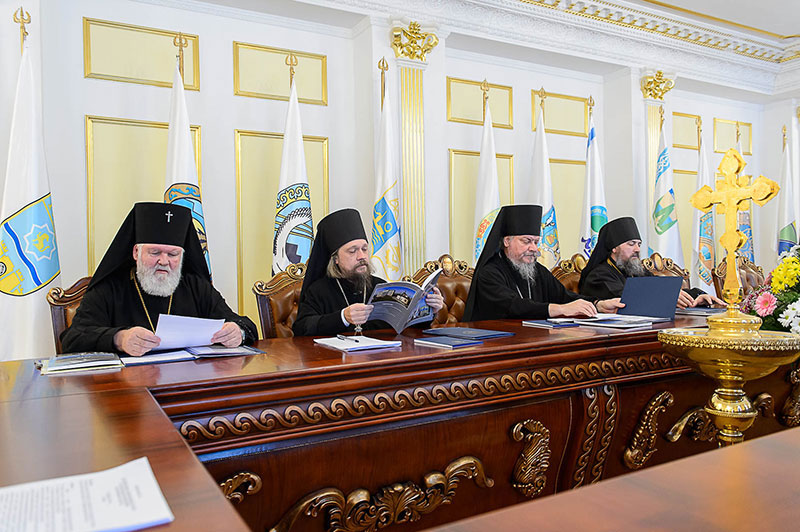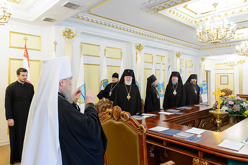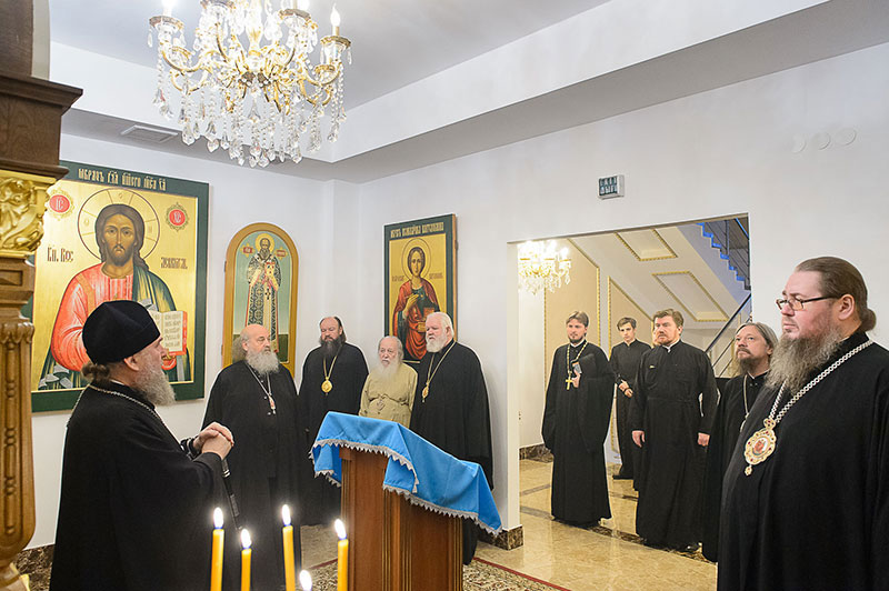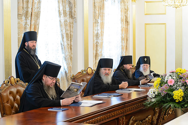 Заседание было предварено служением Божественной Литургии в домовом храме Синода в честь Астанайской-Почаевской иконы Божией Матери, за которой молились и приобщались святых Христовых Таин казахстанские архипастыри.