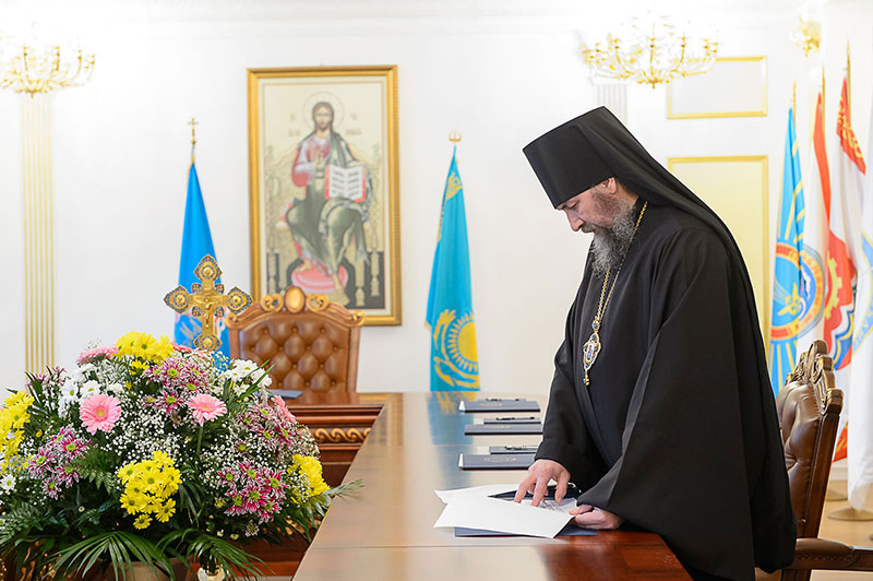 Еще одно выступление Главы Митрополичьего округа на заседании Синода было посвящено посещению Успенского кафедрального собора Астаны, духовно-культурного центра имени равноапостольных Кирилла и Мефодия и музея новомучеников и исповедников Казахстанских делегациями поместных Православных Церквей и инославных конфессий. Как отметил владыка митрополит, с историей строительства и современной жизнью главного храма страны и деятельностью духовно-культурного центра и музея ознакомились: Блаженнейший Патриарх Иерусалимский и всей Палестины Феофил III; делегация Сербской Православной Церкви во главе с викарием Патриарха Сербского, епископом Моравичским Антонием; делегация Римско-Католической Церкви во главе с кардиналом Франческо Коккопальмерио; делегация Армянской Апостольской Церкви во главе с руководителем отдела международных связей архиепископом Натаном (Оганесяном).