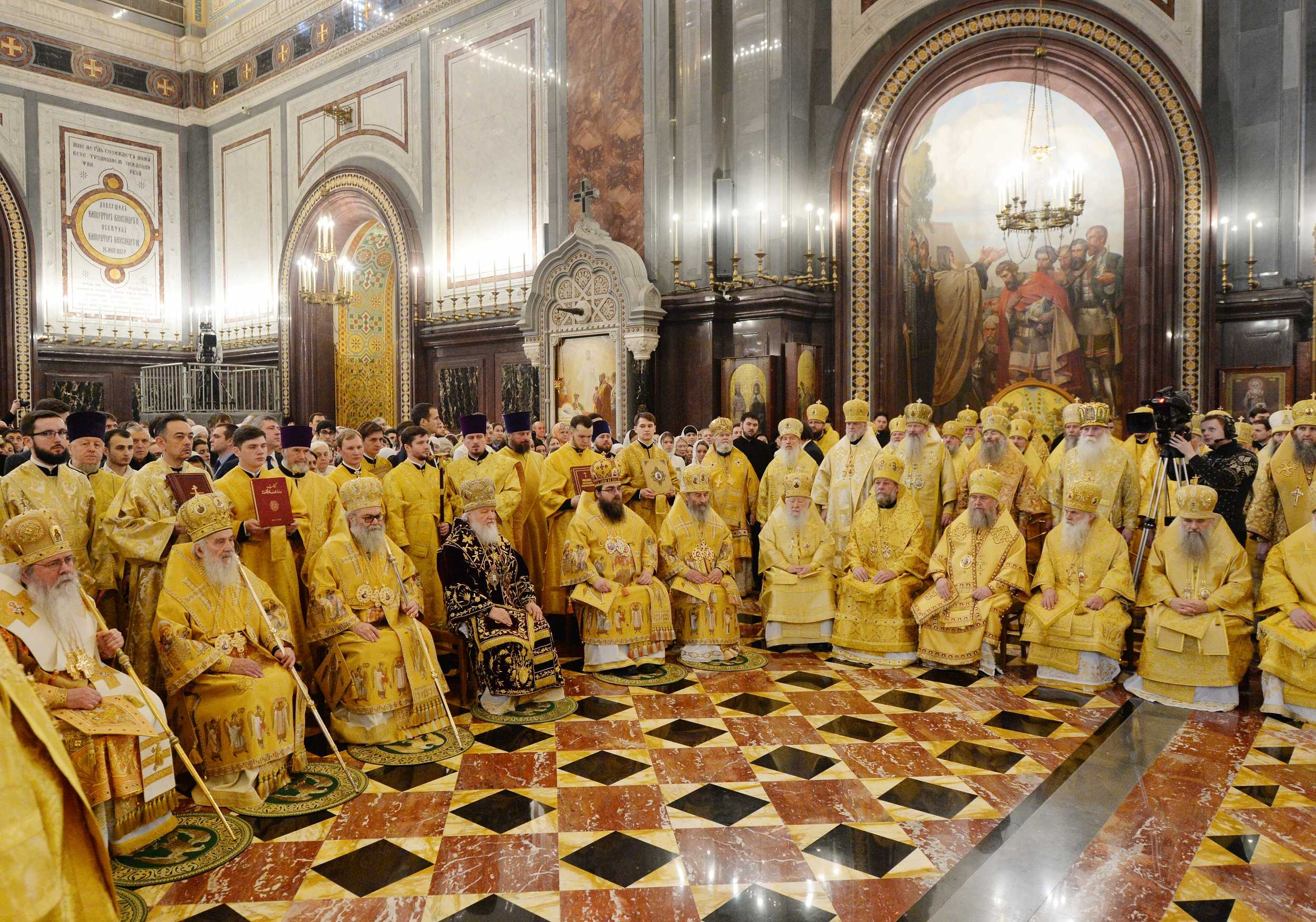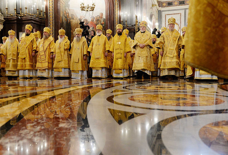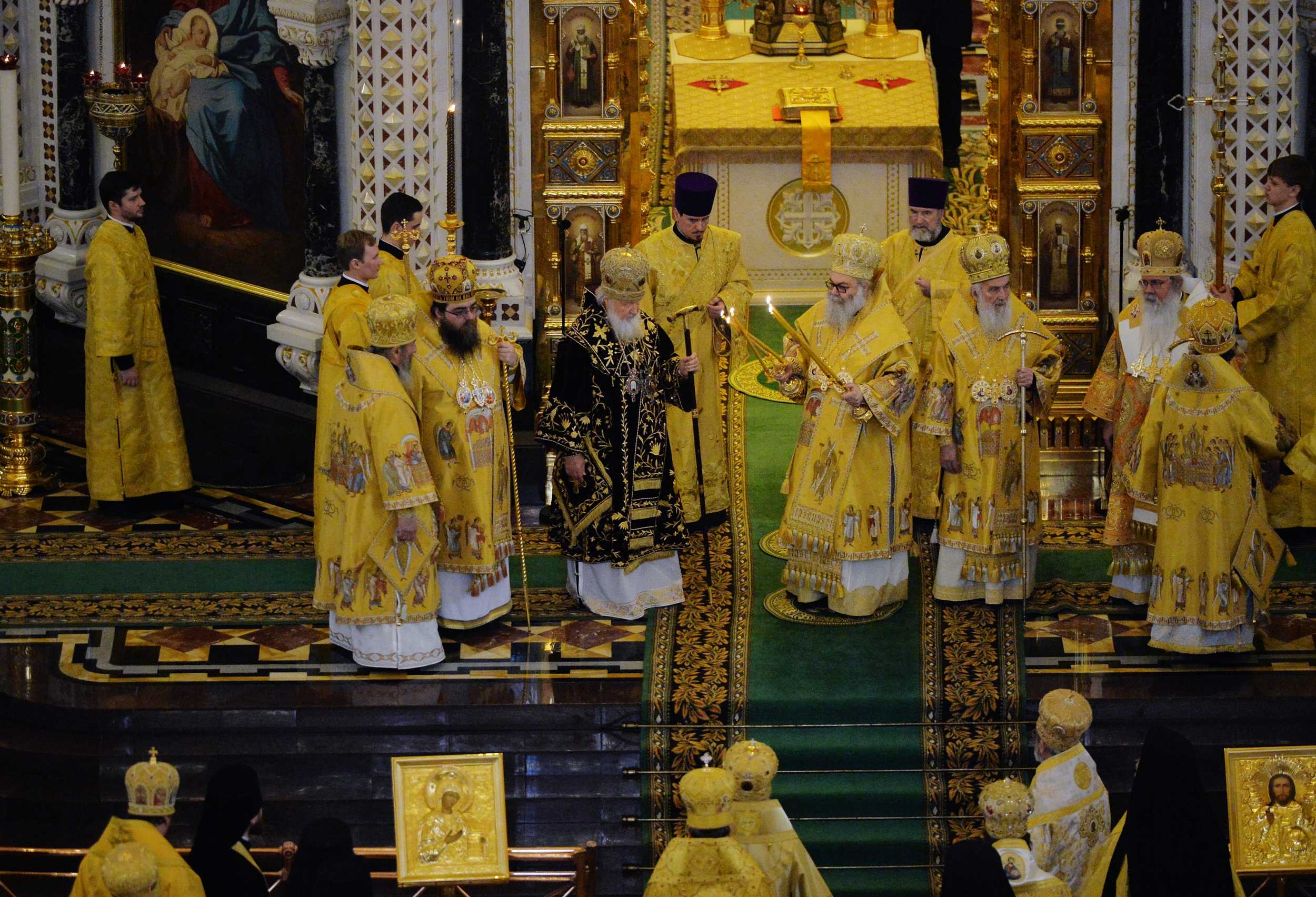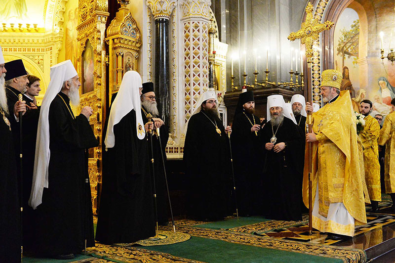 Богослужение возглавили: Блаженнейший Патриарх Антиохийский и всего Востока Иоанн X, Святейший Патриарх Московский и всея Руси Кирилл, Святейший Патриарх Сербский Ириней, Блаженнейший Митрополит Чешских земель и Словакии Ростислав, Блаженнейший Митрополит всей Америки и Канады Тихон.