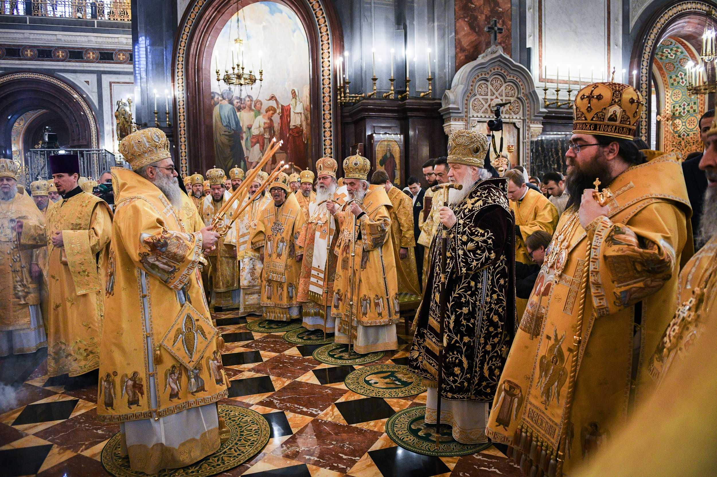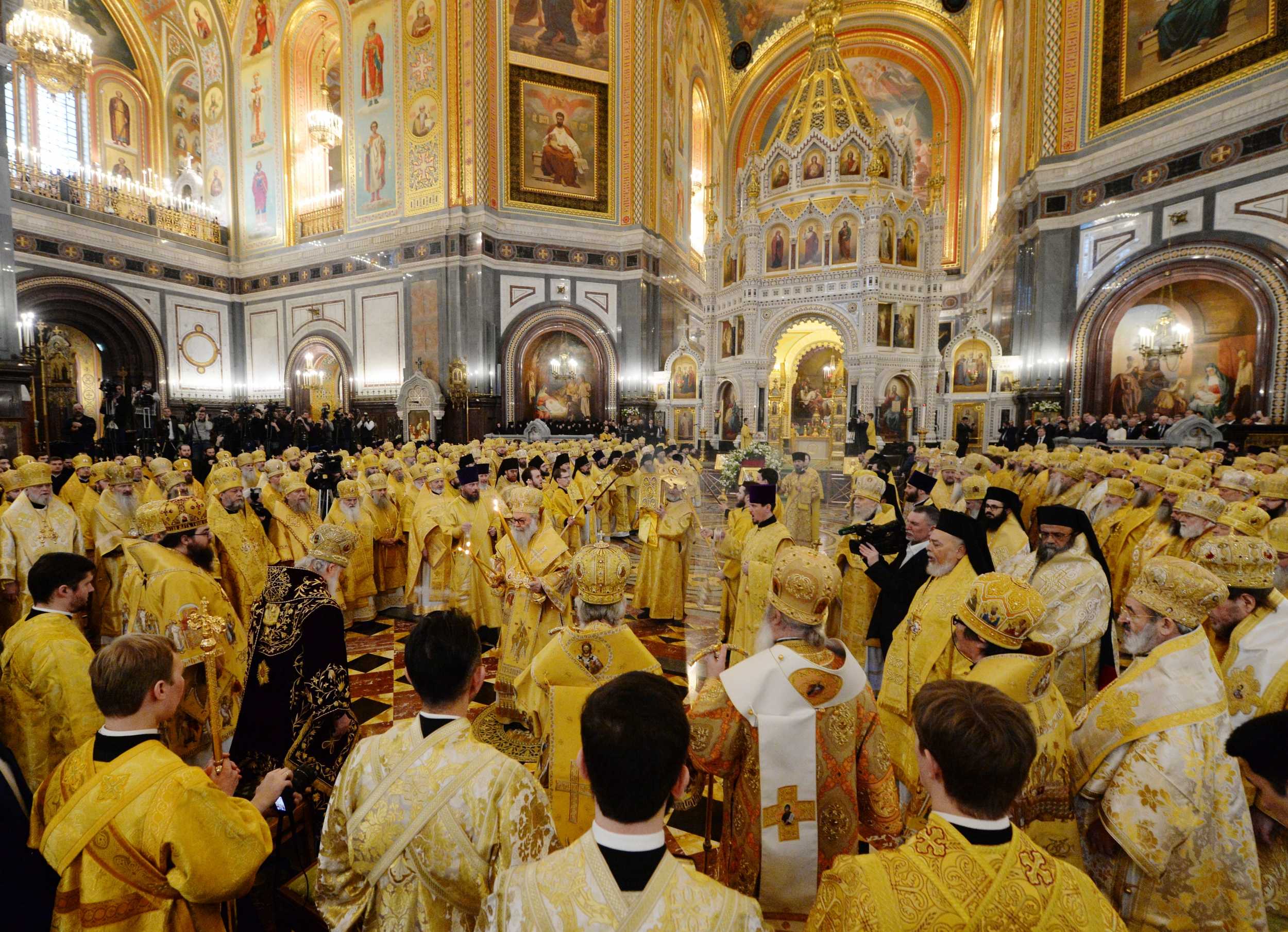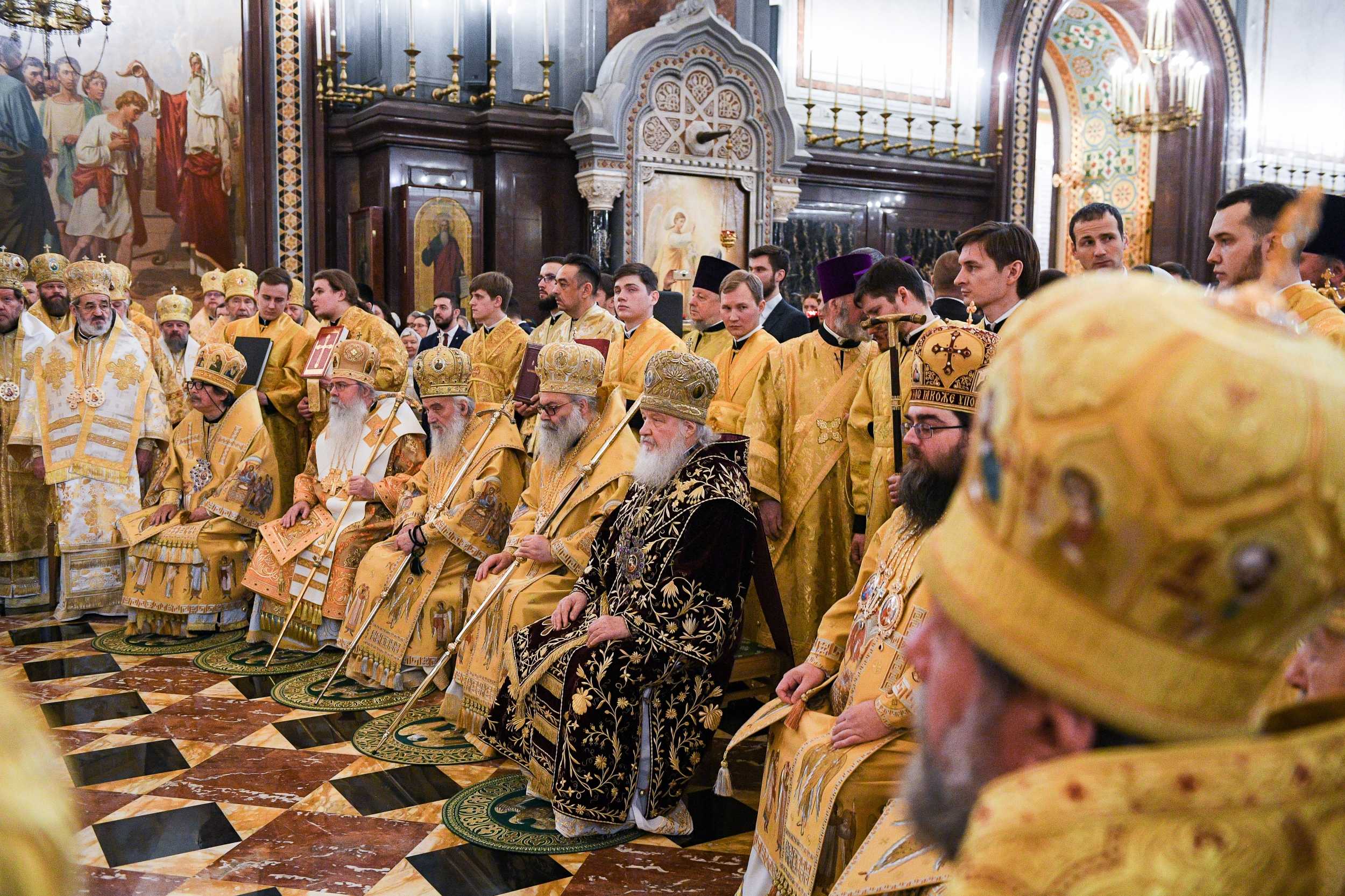 Богослужение возглавили: Блаженнейший Патриарх Антиохийский и всего Востока Иоанн X, Святейший Патриарх Московский и всея Руси Кирилл, Святейший Патриарх Сербский Ириней, Блаженнейший Митрополит Чешских земель и Словакии Ростислав, Блаженнейший Митрополит всей Америки и Канады Тихон.