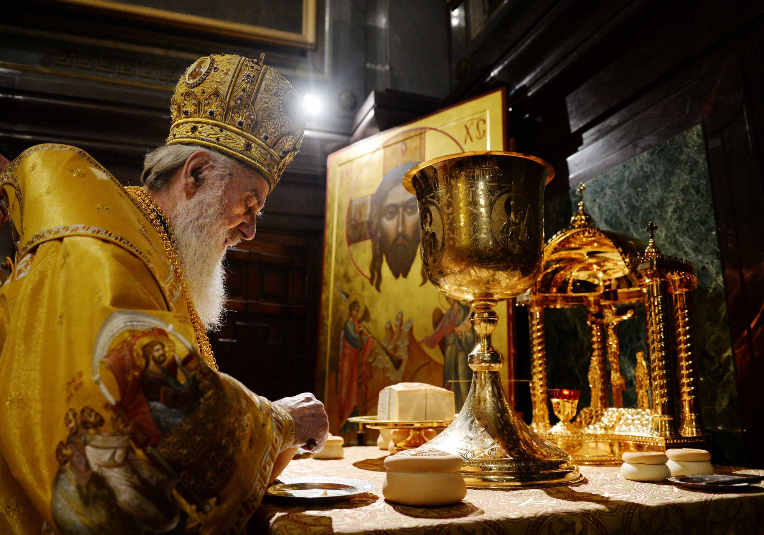 В алтаре Храма Христа Спасителя молился представитель Патриарха Иерусалимского при Патриархе Московском и всея Руси архимандрит Стефан (Диспиракис).
