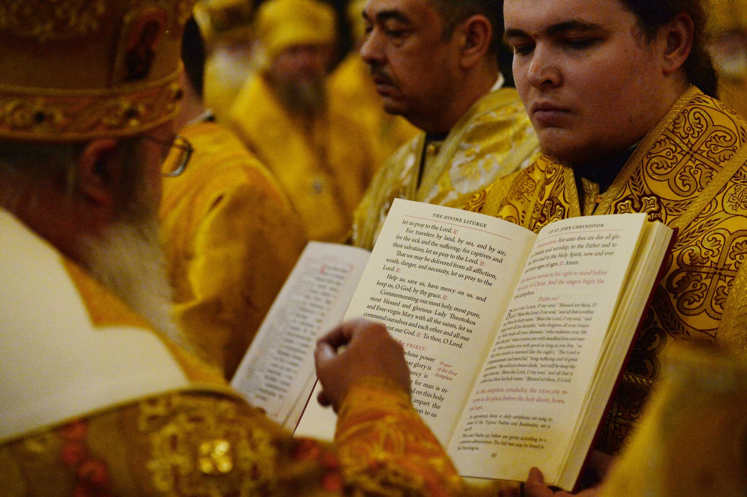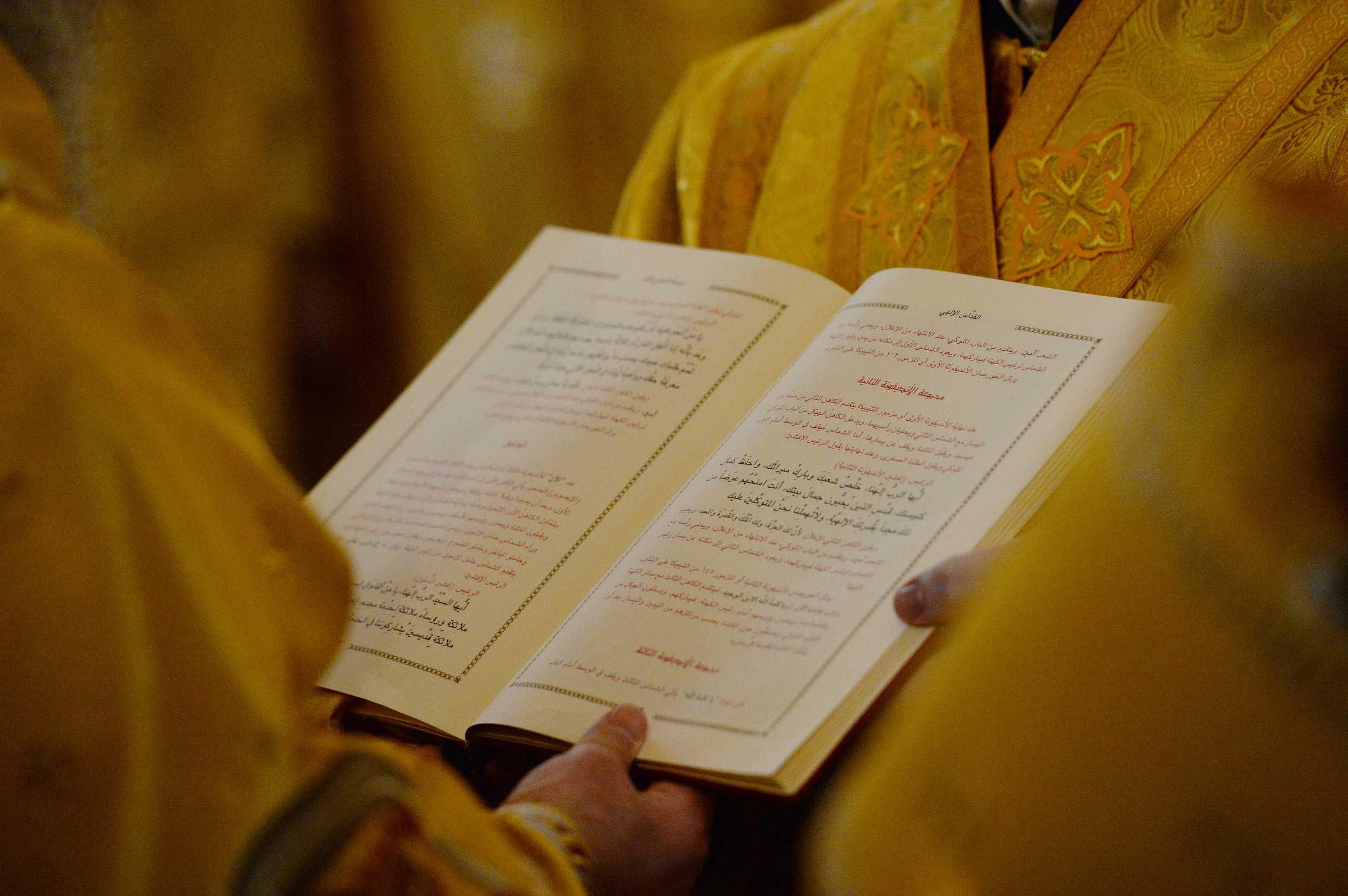 Возгласы и молитвы Божественной литургии звучали на церковнославянском, арабском и английском языках.