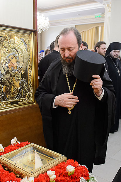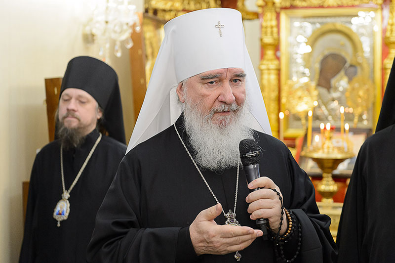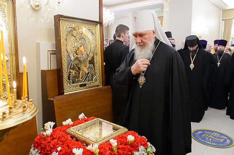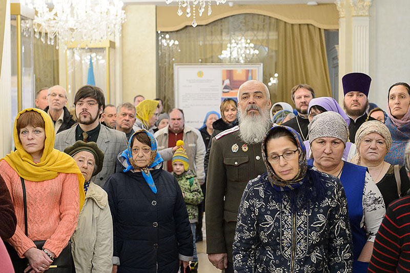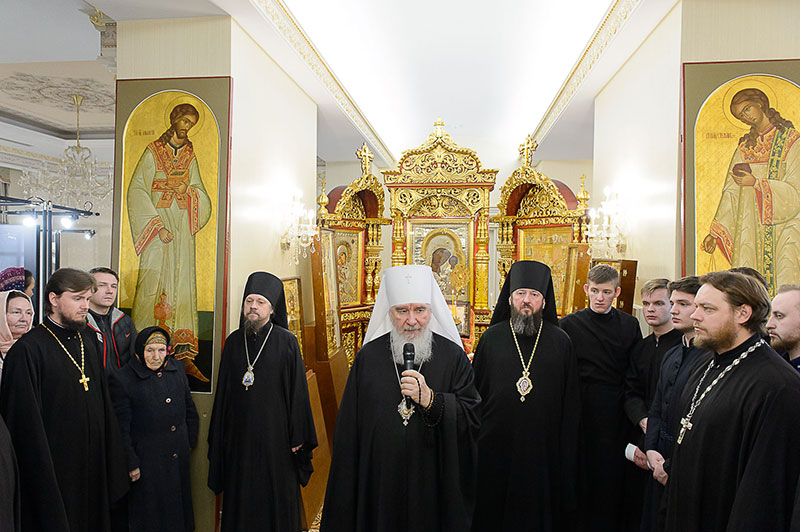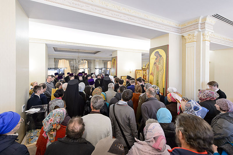 Иерарх совершил славление перед ковчегом с мощами святителя и исповедника Тихона, Патриарха Всероссийского. Вместе с владыкой митрополитом молились: викарии Астанайской епархии – епископ Талдыкорганский Нектарий и епископ Каскеленский Геннадий; епископ Усть-Каменогорский и Семипалатинский Амфилохий; благочинный приходов Алма-Аты протоиерей Валерий Захаров; секретарь Митрополичьего округа, Заслуженный деятель искусств Российской Федерации, член Церковно-общественного совета при Патриархе Московском и всея Руси по развитию церковного пения О.Н. Овчинников; руководители отделов и комиссий Митрополичьего округа и Алма-Атинской епархии, священнослужители, преподаватели и студенты Алма-Атинской духовной семинарии, прихожане храмов.