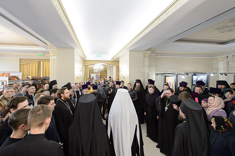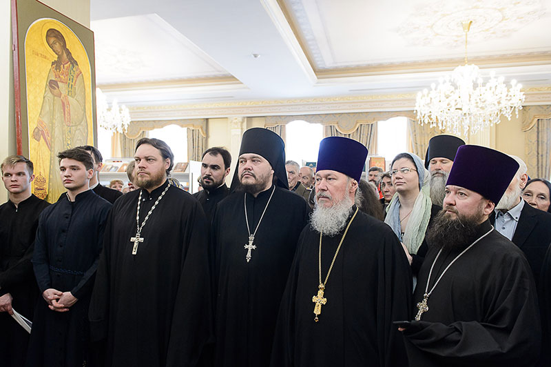 После молитвы митрополит Климент тепло приветствовал архипастырей, священнослужителей и мирян и передал организаторам и участникам выставки благословение Святейшего Патриарха Кирилла.