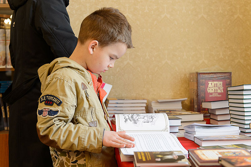 Обращаясь к собравшимся глава Издательского отдела, в частности, произнес: «Здесь, в православном духовном центре города Алма-Аты мы открыли выставку «Радость Слова». Обратите внимания на то, что оба слова из названия выставки пишутся с заглавной буквы. Слово – это великий дар, которым обладает человек. Ни одно творение говорить не может, кроме человека, но еще Слово с большой буквы имеет только человек. Господь наш Иисус Христос дал нам это Слово, чтобы мы пользовались им и имели жизнь вечную. Здесь на этой выставке вы найдете много замечательных добрых и полезных книг. Книг, которые помогают нам понять слова Христа. Понять, почему Господь дал нам жизнь эту. Скажу вам слова преподобного Макария Великого. Он говорит: Господь сотворил этот мир красивый, замечательный, чтобы жил человек и пользовался этими дарами. Если мы действительно посмотрим, то увидим, что все направлено на благо человека. А человека, говорит преподобный Макарий Великий, Бог сотворил, чтобы пребывать, жить в его сердце. Вот это все мы можем узнать из книг».