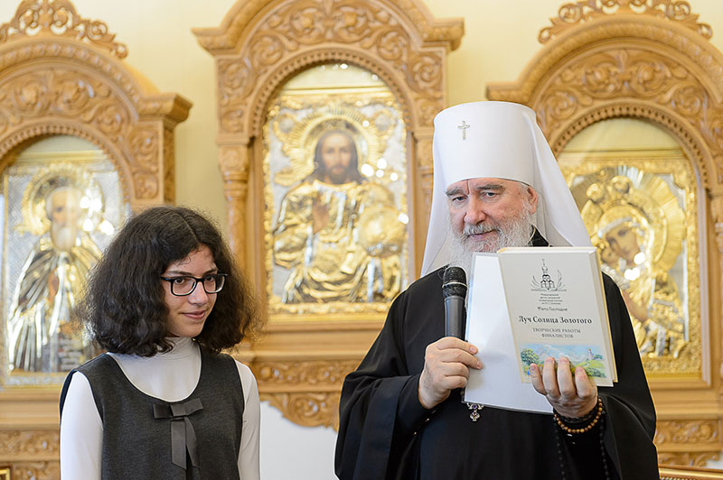 Митрополит Климент поздравил лауреатов Международного детско-юношеского литературного конкурса имени Ивана Шмелева «Лето Господне» из Алма-Аты: Селинину Марию, занявшую в 2018 году 2 место, Коржова Ивана, который вышел в финал в 2019 году, Лаврову Валентину, занявшую 3 место в 2018 году, и Дядчук Ангелину, получившую в 2015 году – 2 место. В подарок архипастырь вручил юным писателям сборник работ победителей конкурса «Лето Господне».