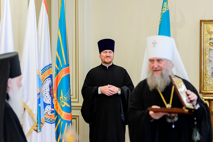 Глава Митрополичьего округа сообщил епископату о создании Совета руководителей традиционных христианских конфессий Казахстана и выступил с докладом о своих встречах с государственными, общественными и религиозными деятелями, руководителями дипломатических миссий: верховным муфтием Республики Казахстан Серикбаем кажы Оразом, чрезвычайным и полномочным послом России в Республике Казахстан А.Н. Бородавкиным, чрезвычайным и полномочным послом Федеративной Республики Германия в Казахстане Т. Клиннером, чрезвычайным и полномочным послом Греции в Республике Казахстан А. Катранисом, с акимом Нур-Султана А.С. Кульгиновым, акимом Западно-Казахстанской области Г.Н. Искалиевым, акимом Актюбинской области О.С. Уразалиным, председателем координационного комитета международной некоммерческой организации «Рамсарская региональная инициатива Центральной Азии» Э. Рустамовым.