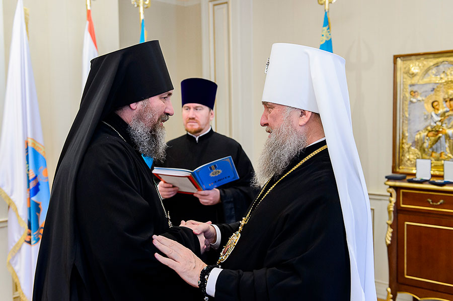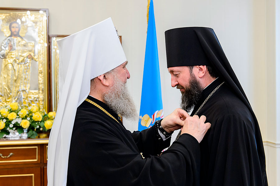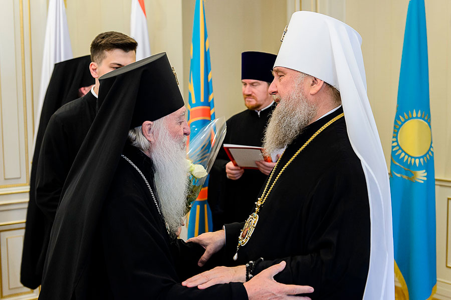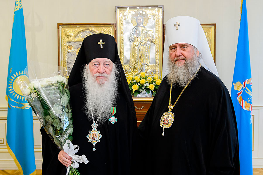 Во внимание к архипастырским трудам на благо Православной Церкви Казахстана и в связи с юбилеями Преосвященные владыки были удостоены наград Митрополичьего округа: архиепископ Антоний – ордена святых преподобномучеников Серафима и Феогноста, епископ Амфилохий – ордена «Енбек Үшiн» (За труды), епископ Серапион – ордена святых преподобномучеников Серафима и Феогноста.