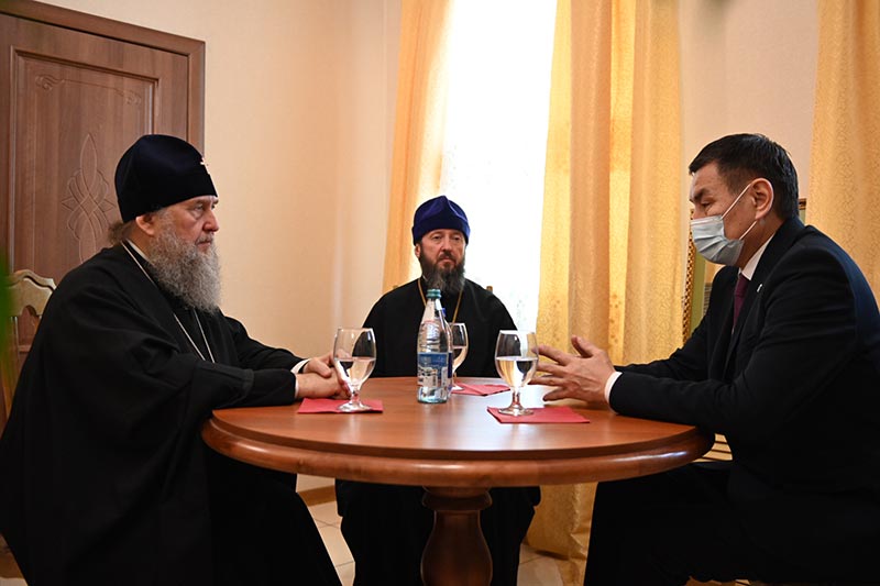 Н.А. Сактаганов рассказал митрополиту Александру о социально-экономической и культурной жизни города, осуществлении различных проектов, касающихся сохранения памятников истории и культуры, улучшения инфраструктуры, жилищного строительства и благоустройства дворов и улиц.