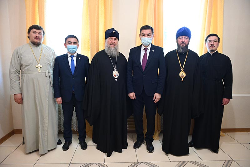 Во встрече приняли участие: епископ Усть-Каменогорский и Семипалатинский Амфилохий, руководитель административного секретариата Главы Митрополичьего округа иерей Георгий Сидоров, руководитель службы протокола митрополита протодиакон Роман Головин, секретарь Усть-Каменогорской епархии диакон Илия Кван; заместитель акима Айдар Сериказынович Садырбаев.