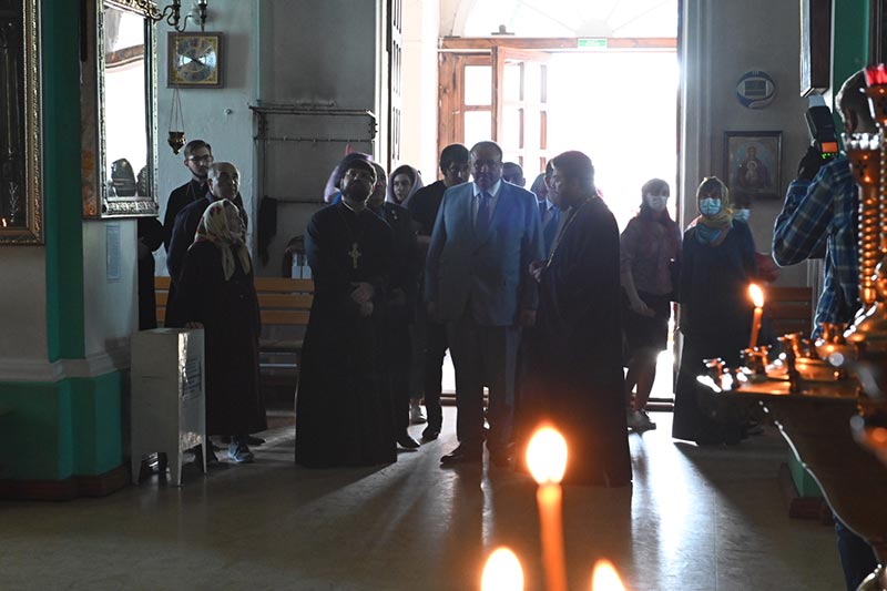 После освящения памятной доски руководитель административного секретариата Главы Казахстанского Митрополичьего округа иерей Георгий Сидоров провел для президента благотворительного фонда Г.М. Погосяна, Героя Российской Федерации В.Н. Чухванцева и гостей из России экскурсию по Воскресенскому собору. Участники мероприятий, посвященных 200-летию Ф.М. Достоевского, поклонились ковчегу с мощами святителя Николая Чудотворца, доставленным в собор к празднику митрополитом Александром.