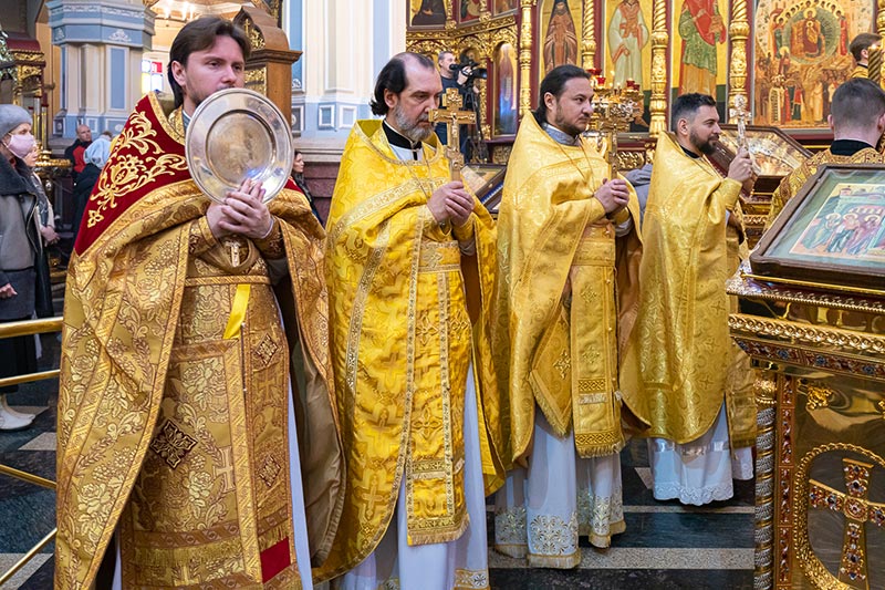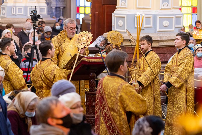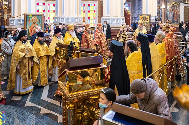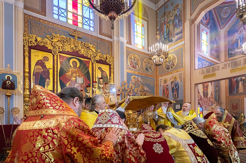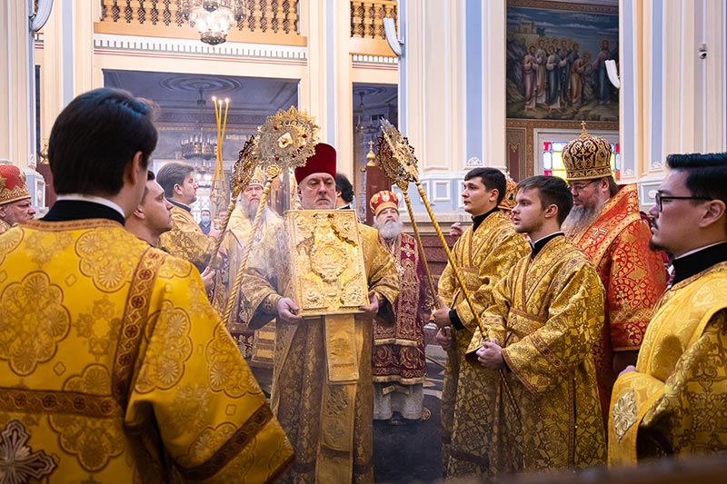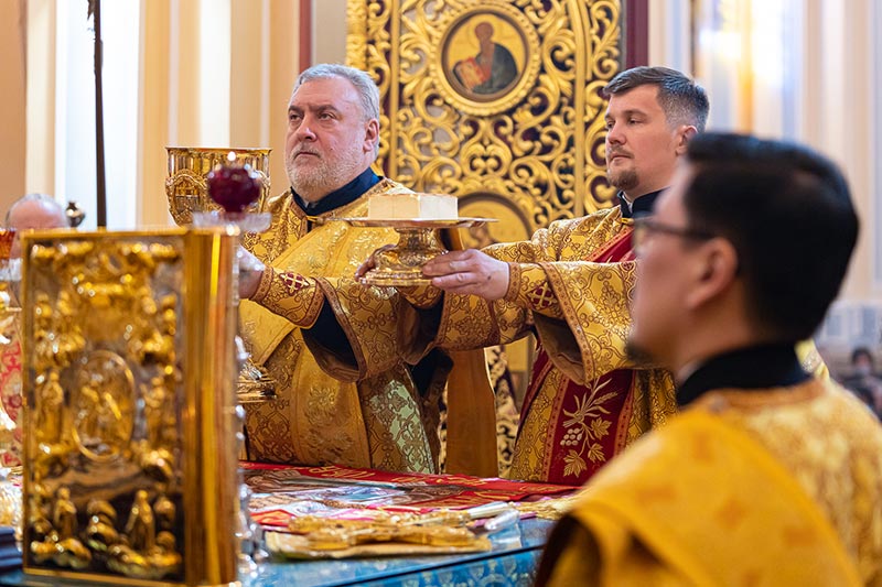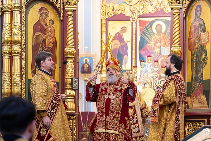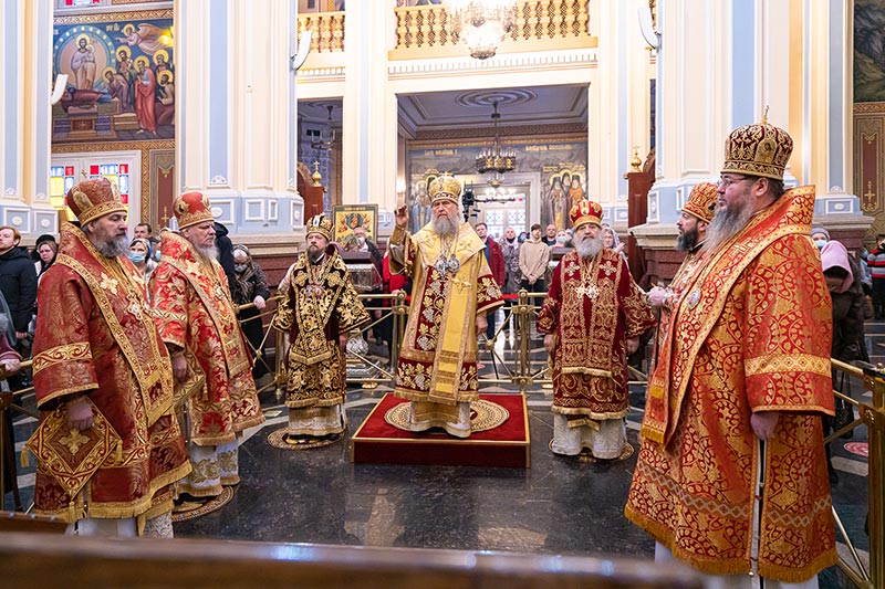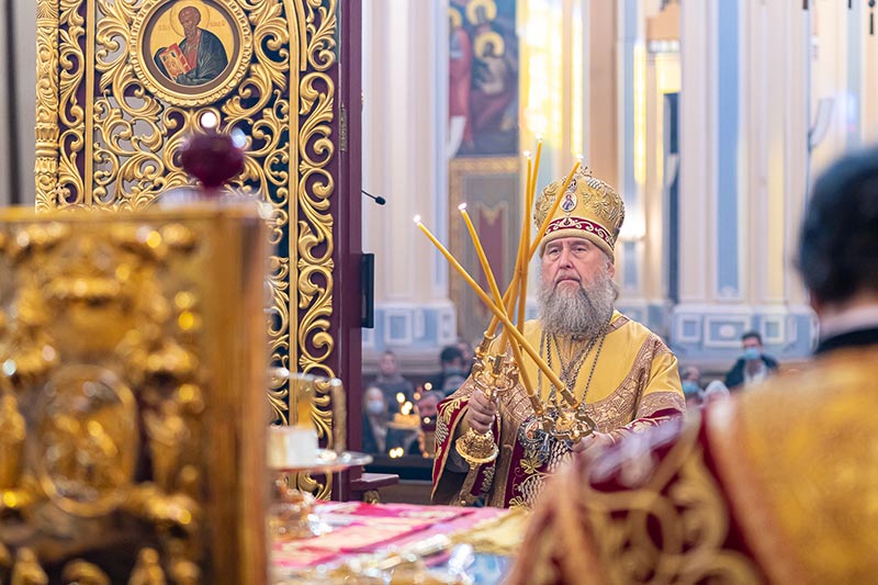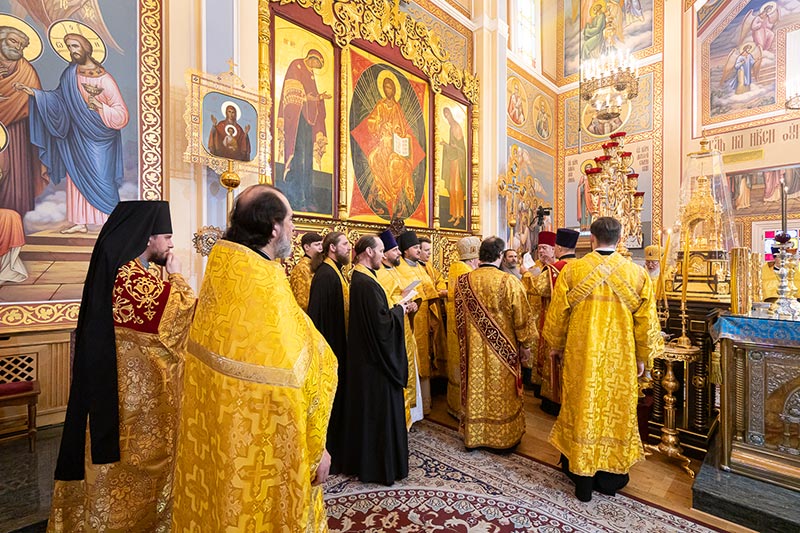 На Литургии возносились молитвы о единстве Святого Православия; об умножении любви, искоренении ненависти и всякой злобы; об избавлении от губительной эпидемии.
