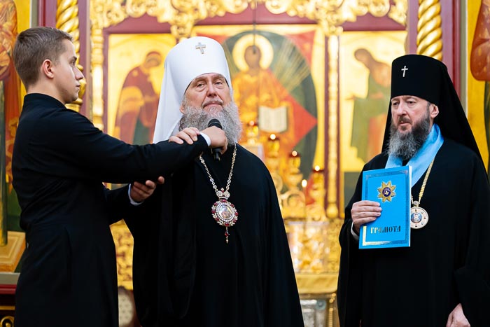 Вручая орден, Глава Митрополичьего округа, в частности, отметил: «Многие годы Вы совершаете служение на благо Святой Церкви в пределах Казахстана, словом и делом научая народ Божий жизни по заповедям Христовым, любви, терпению и состраданию. В особое время новейшей церковной истории Господь призвал Вас к архипастырскому служению на земле Рудного Алтая. Желаю, чтобы опыт и знания, которыми Вы располагаете, Ваши таланты, административные способности и трудолюбие всецело послужили ко благу Церкви, к пользе Восточно-Казахстанской паствы, к созиданию новых святынь и укреплению плодотворного взаимодействия с государственными властями и общественными организациями. Пусть Всемилостивый Господь, заступлением Пресвятой Богородицы, молитвами новомучеников и исповедников, в земле Казахстанской просиявших, подаст Вам крепость душевных и телесных сил и Свою благодатную помощь в дальнейшем несении архипастырских трудов на благо Святой Церкви».