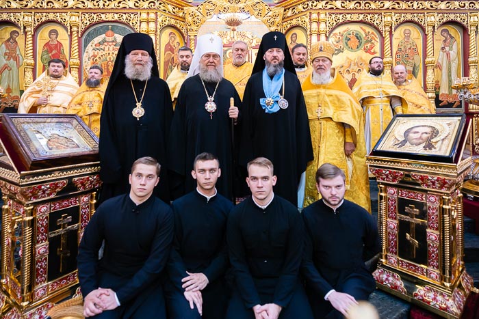 Митрополит Александр пожелал архиепископу Амфилохию здоровья, долголетия и помощи Божией в дальнейшем несении архипастырских трудов на благо Святой Церкви на земле Рудного Алтая, вручил святую просфору и букет цветов.