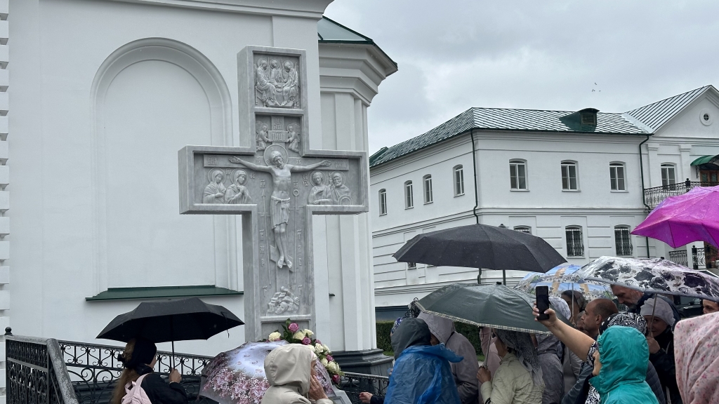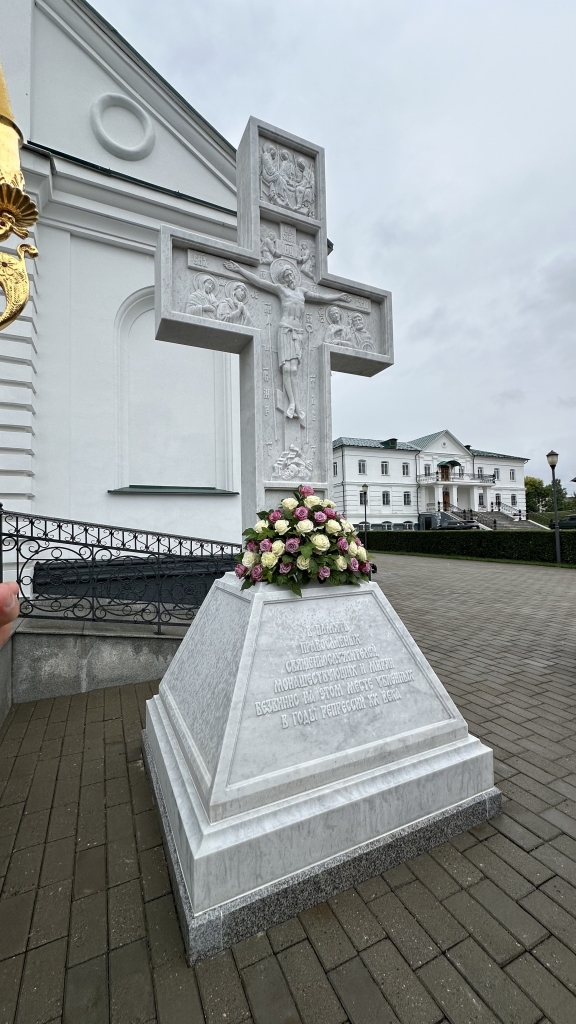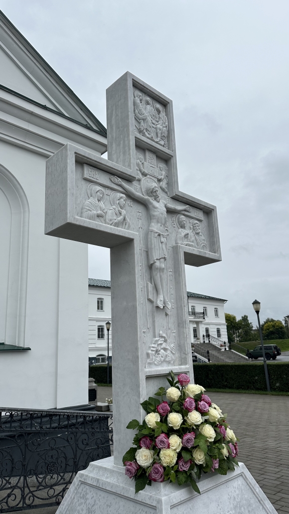 По благословению Высокопреосвященнейшего архиепископа Амфилохия белокаменный резной поклонный крест был установлен у Троицкого храма Свято-Троицкого мужского монастыря.