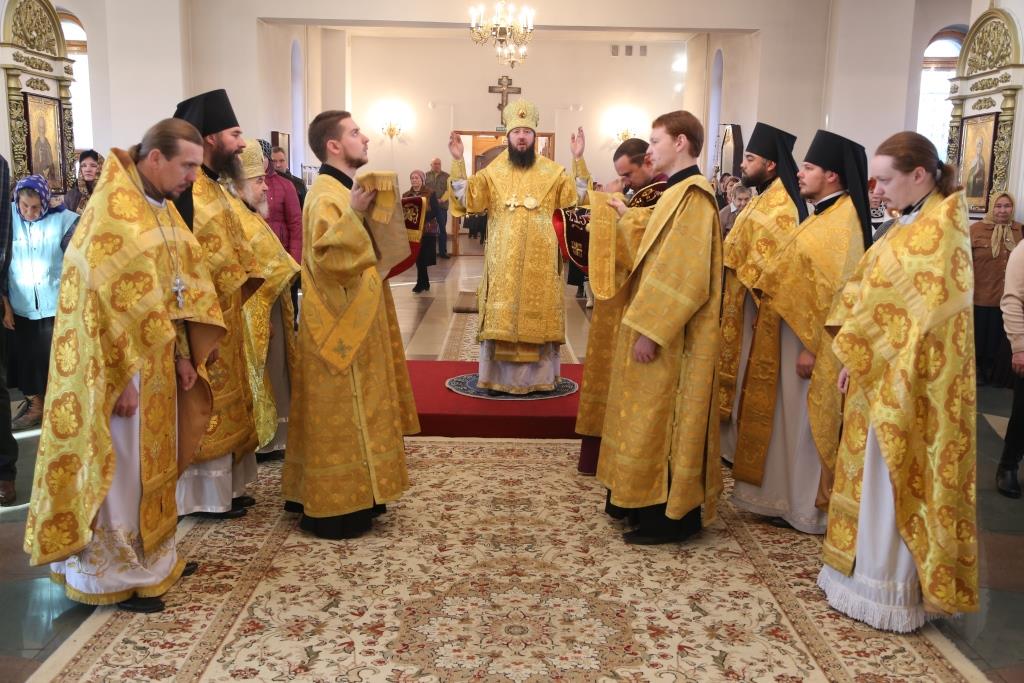 Его Преосвященству сослужили: духовник Свято-Троицкого Усть-Каменогорского мужского монастыря архимандрит Спиридон (Теплухин), иеромонах Никодим (Авдеев), иеромонах Севастиан (Андрющенко), секретарь Управляющего Усть-Каменогорской епархией иеромонах Силуан (Магилев), иерей Алексий Клепиков, иерей Евгений Хохряков; диаконский чин возглавил протодиакон Георгий Засыпкин.