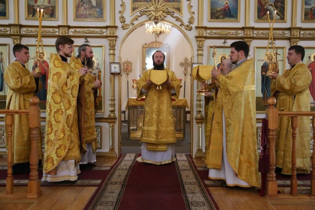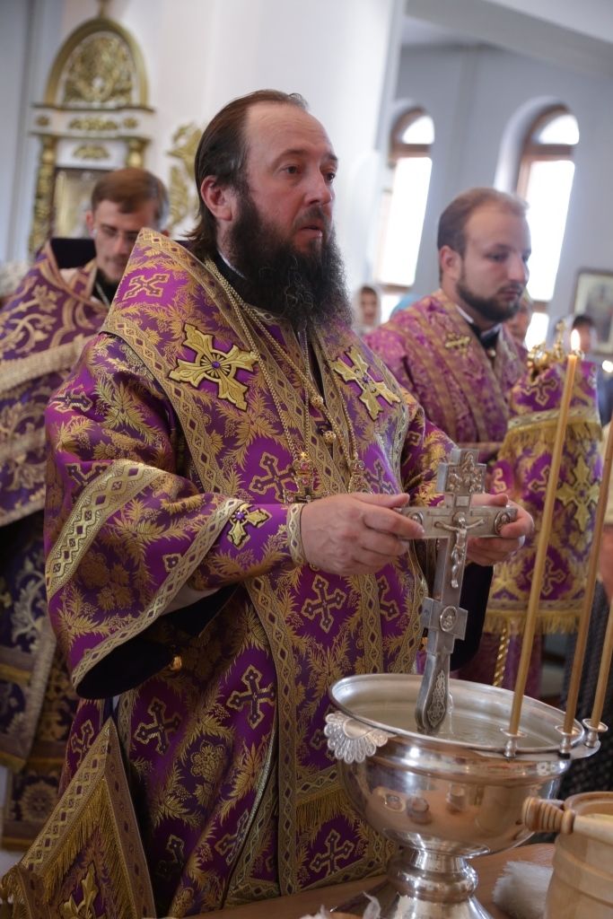 После окончания Божественной Литургии Преосвященный Архипастырь совершил Чин малого освящения воды и вознес молитву на освящение меда.