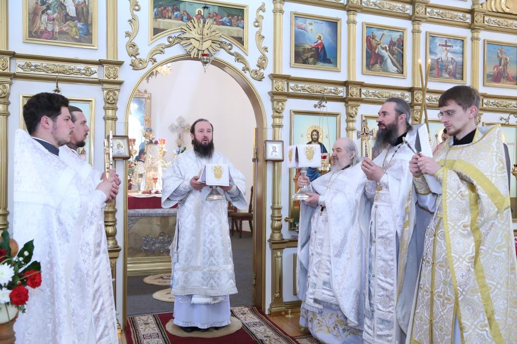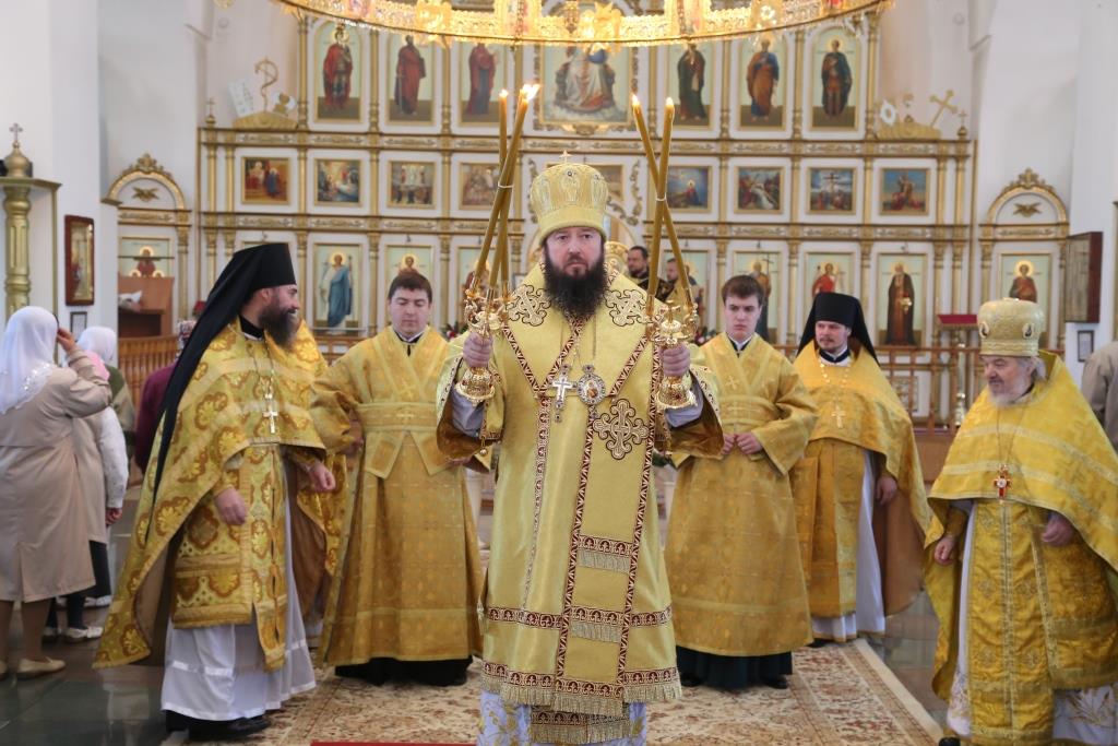 Владыке епископу сослужили: архимандрит Спиридон (Теплухин), иерей Алексий Клепиков, иеромонах Никодим (Авдеев), иеромонах Силуан (Магилев), иерей Константин Дьяков, протодиакон Андрей Дудник, иеродиакон Мефодий (Шевчук).