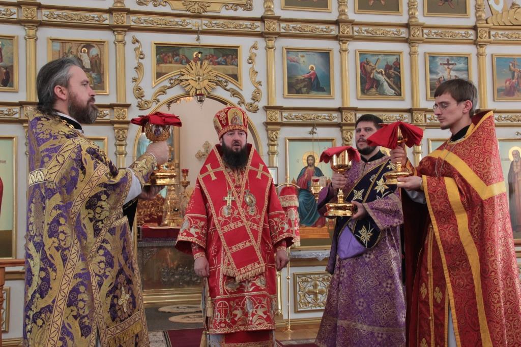 Епископ Усть-Каменогорский и Семипалатинский Амфилохий, находящийся с Архипастырским визитом во втором кафедральном городе епархии, совершил Литургию Преждеосвященных Даров святителя Григория Двоеслова в кафедральном соборе в честь Воскресения Христова. Преосвященному Владыке сослужили благочинный Семипалатинского церковного округа, настоятель Воскресенского собора протоиерей Феодор Проскурин и духовенство Семипалатинского благочиния.